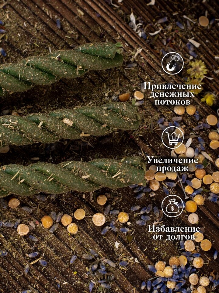 Магические свечи зеленые восковые скрутки на деньги 3 шт. информация: