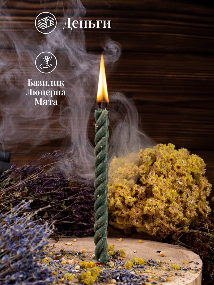 10 цен на Магические свечи зеленые восковые скрутки на деньги 3 шт.