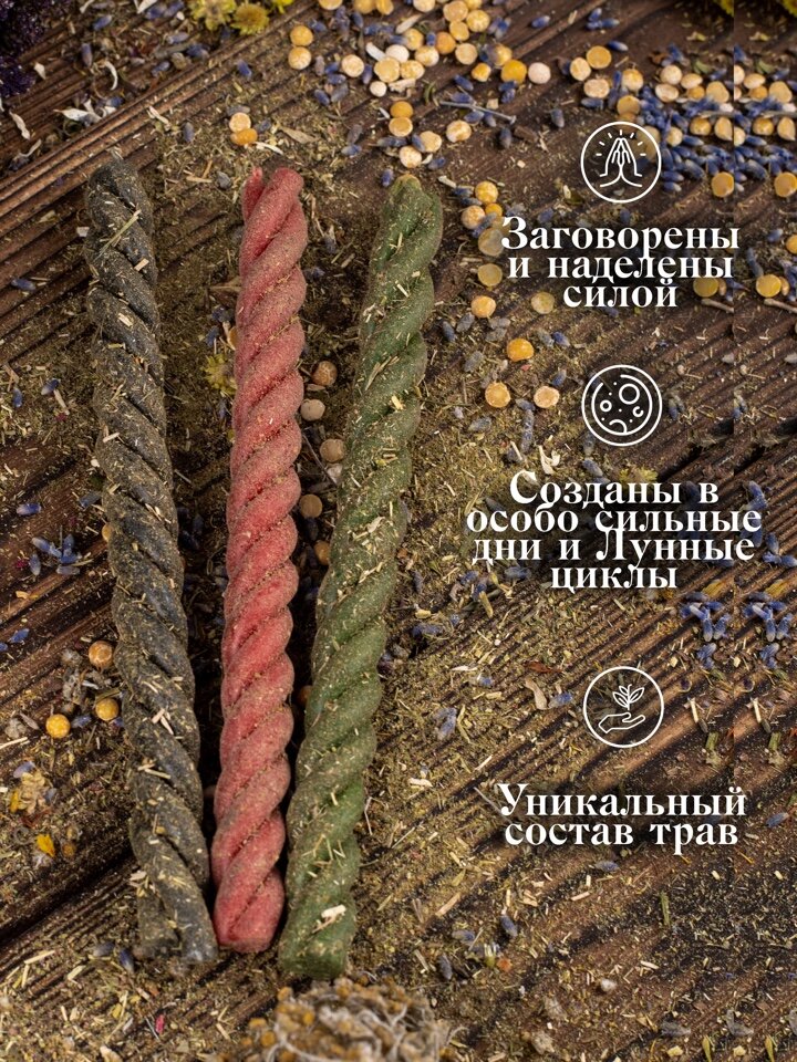 Магические свечи восковые красные скрутки с травами на любовь 3 шт. 331 ₽