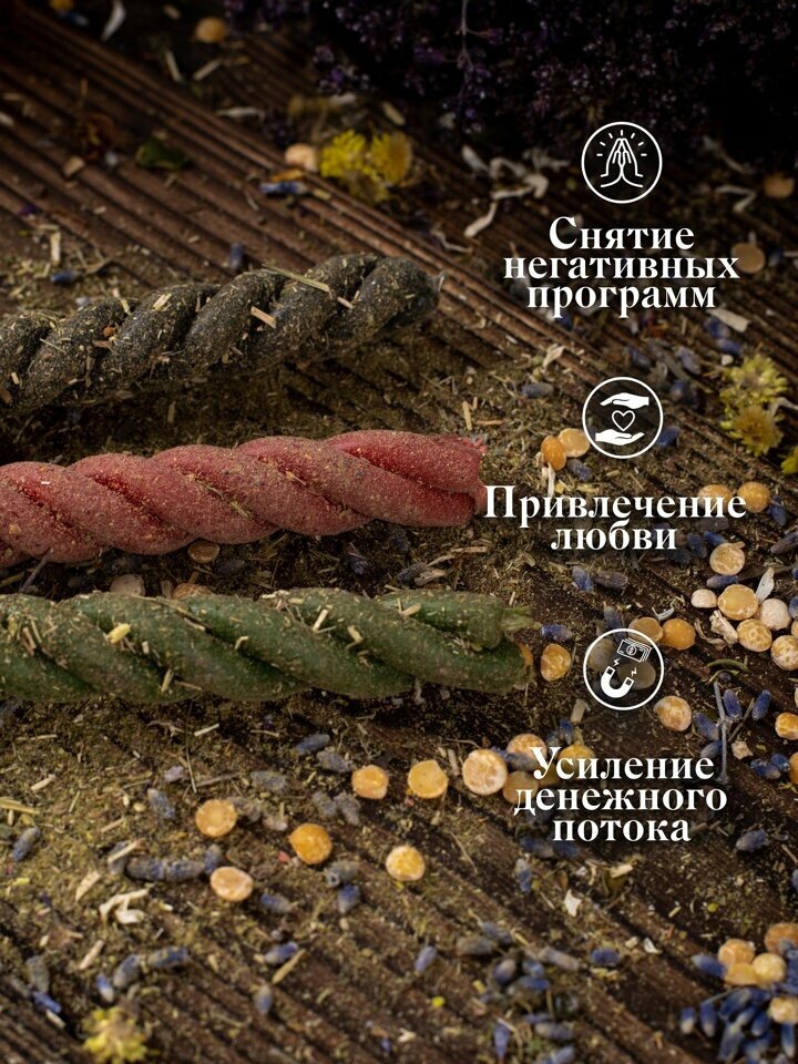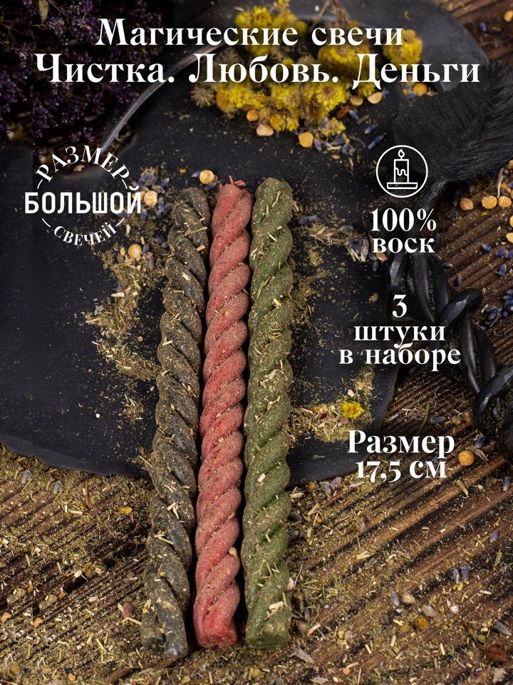 Магические свечи восковые скрутки "Чистка. Любовь. Деньги" 3 шт. информация: