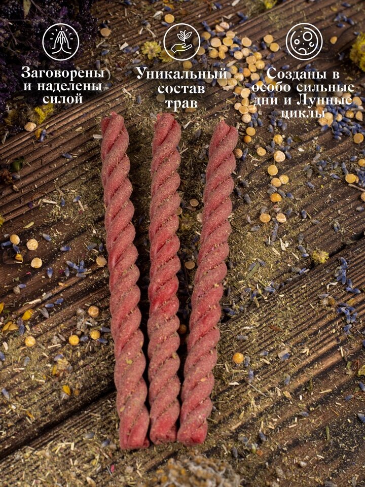 Магические свечи восковые красные скрутки с травами на любовь 3 шт. информация: