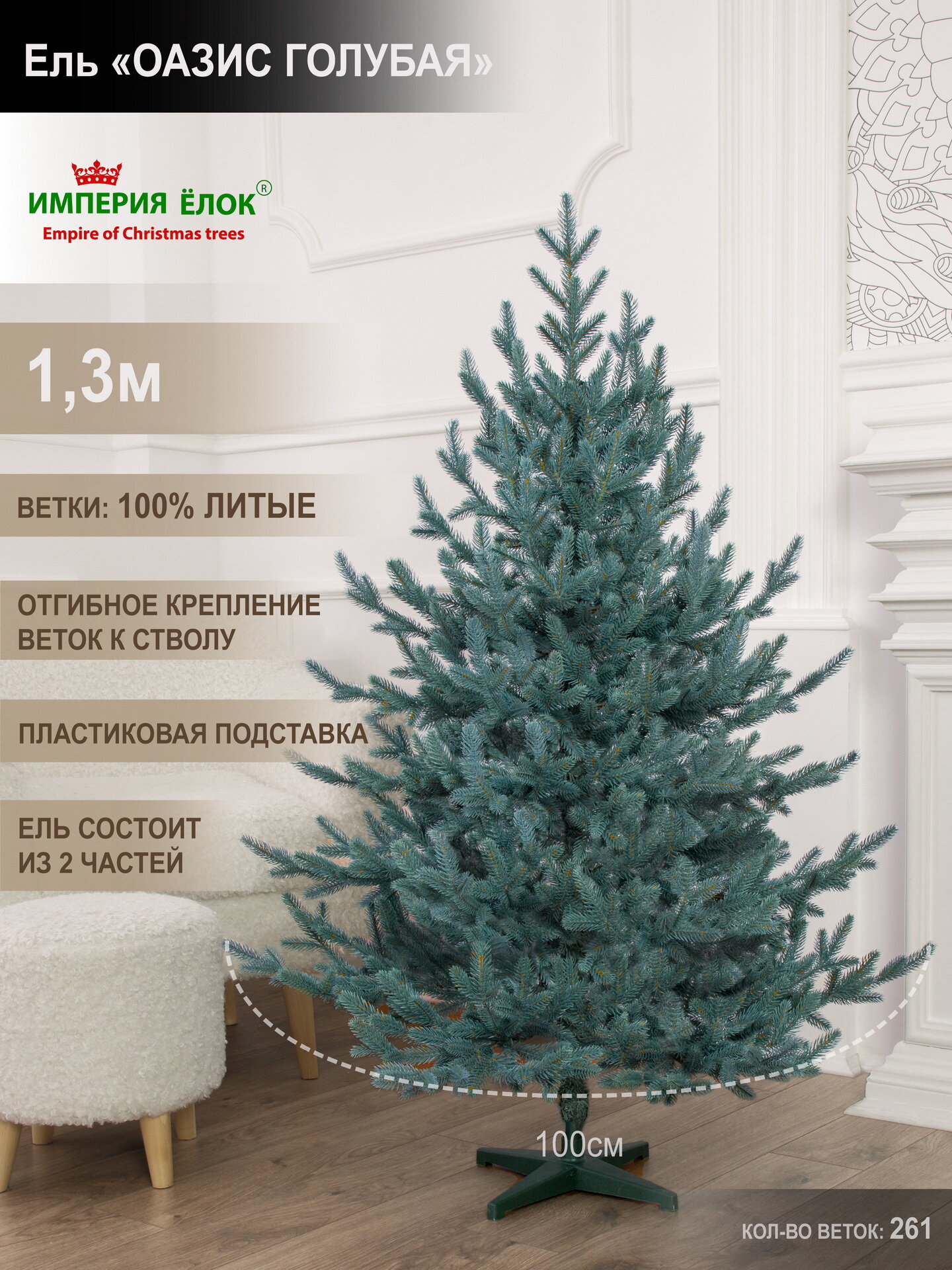 Елка искусственная новогодняя литая голубая 130 см, ель на Рождество в комнату, Империя Ёлок информация: