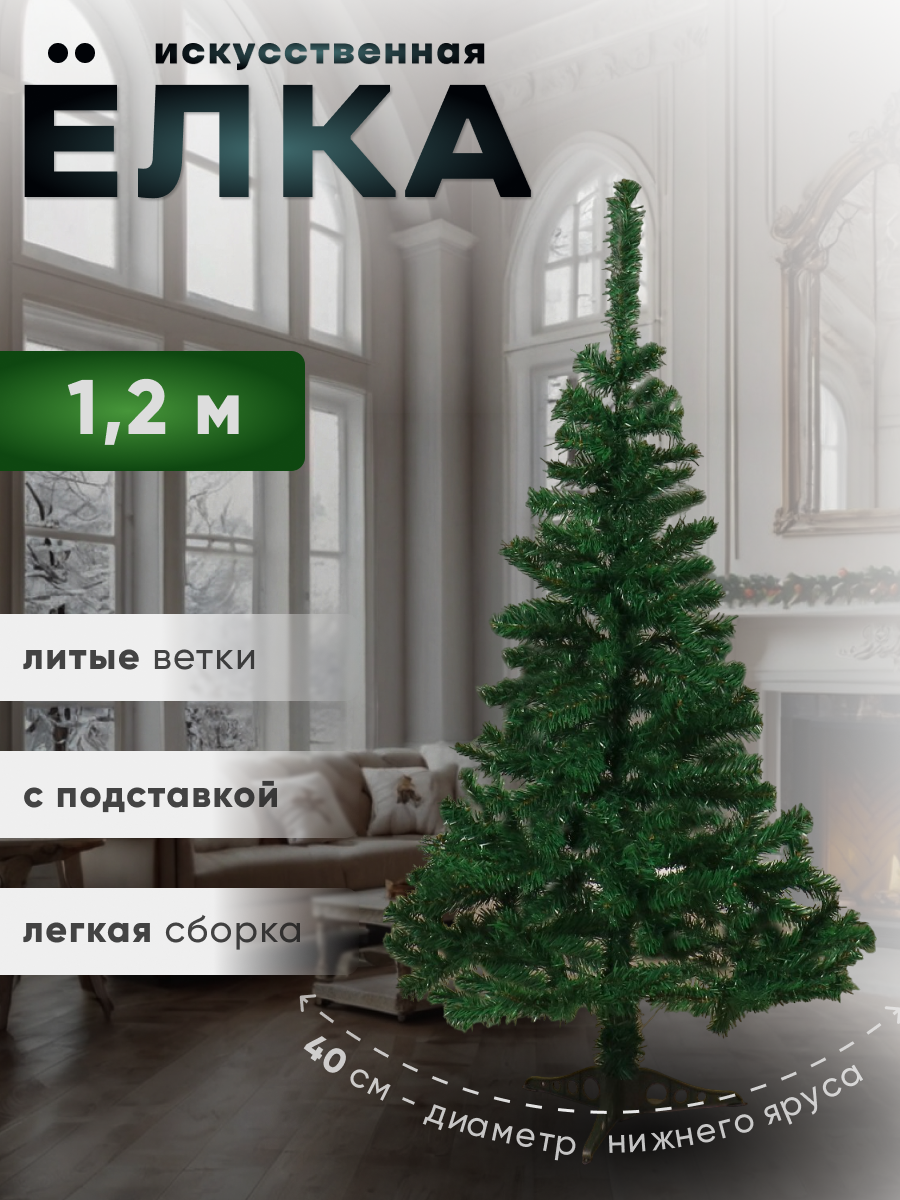 Ёлка простая 120 см d иголок 6 см, d нижнего яруса 40 см, 180 веток, пласт подставка 701417 . 1 382 ₽