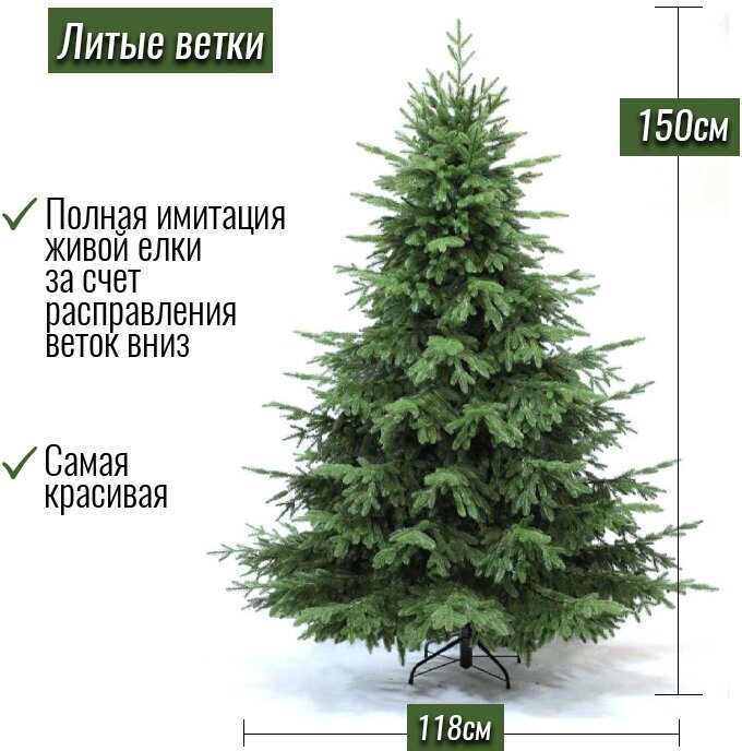 10 цен на Искусственная елка Раскидистая Премиум 150 см, литая 100%, царь елка РДП-150