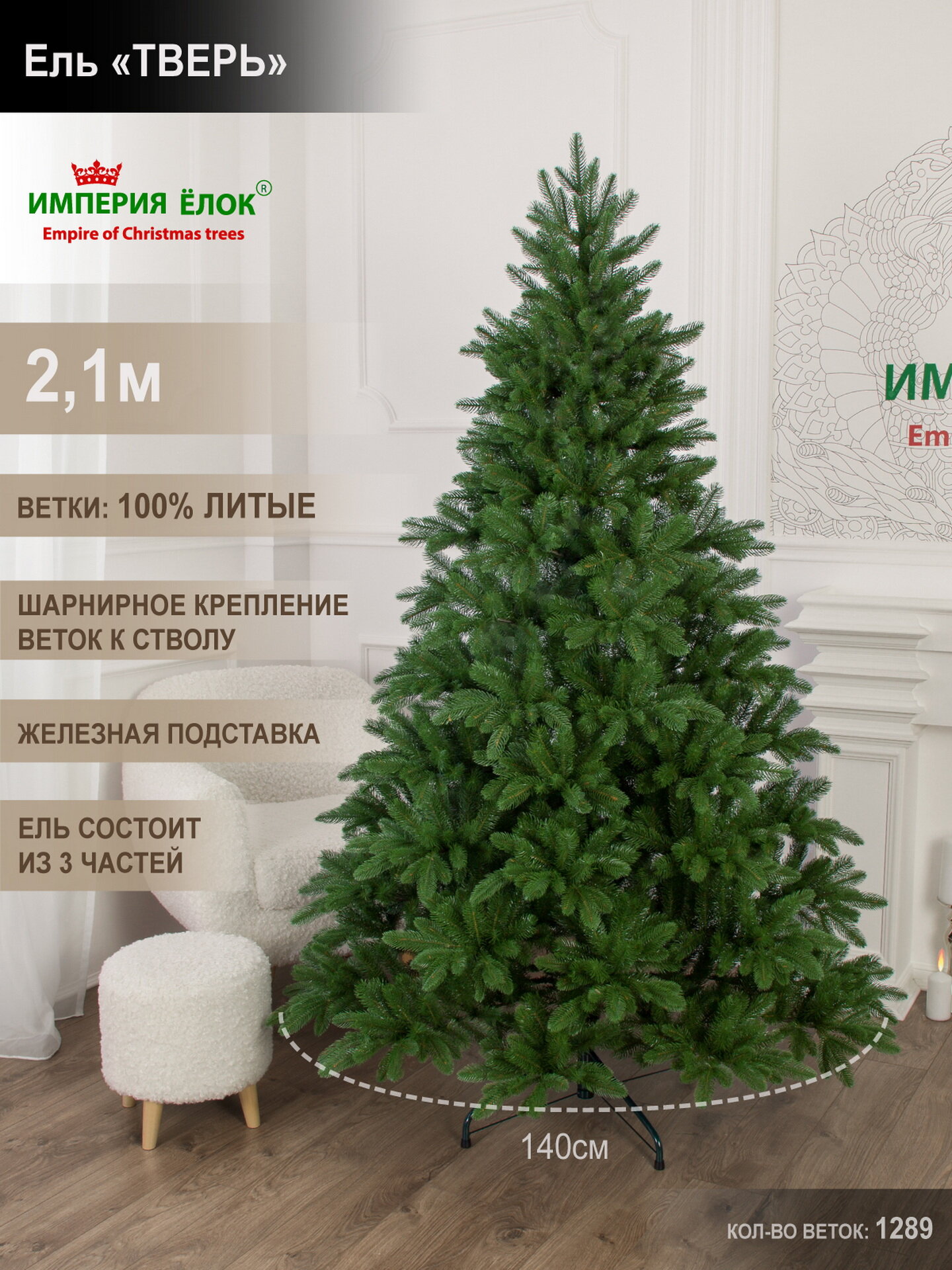 Елка искусственная новогодняя литая напольная 210 см, ель для помещений, Империя Ёлок информация:
