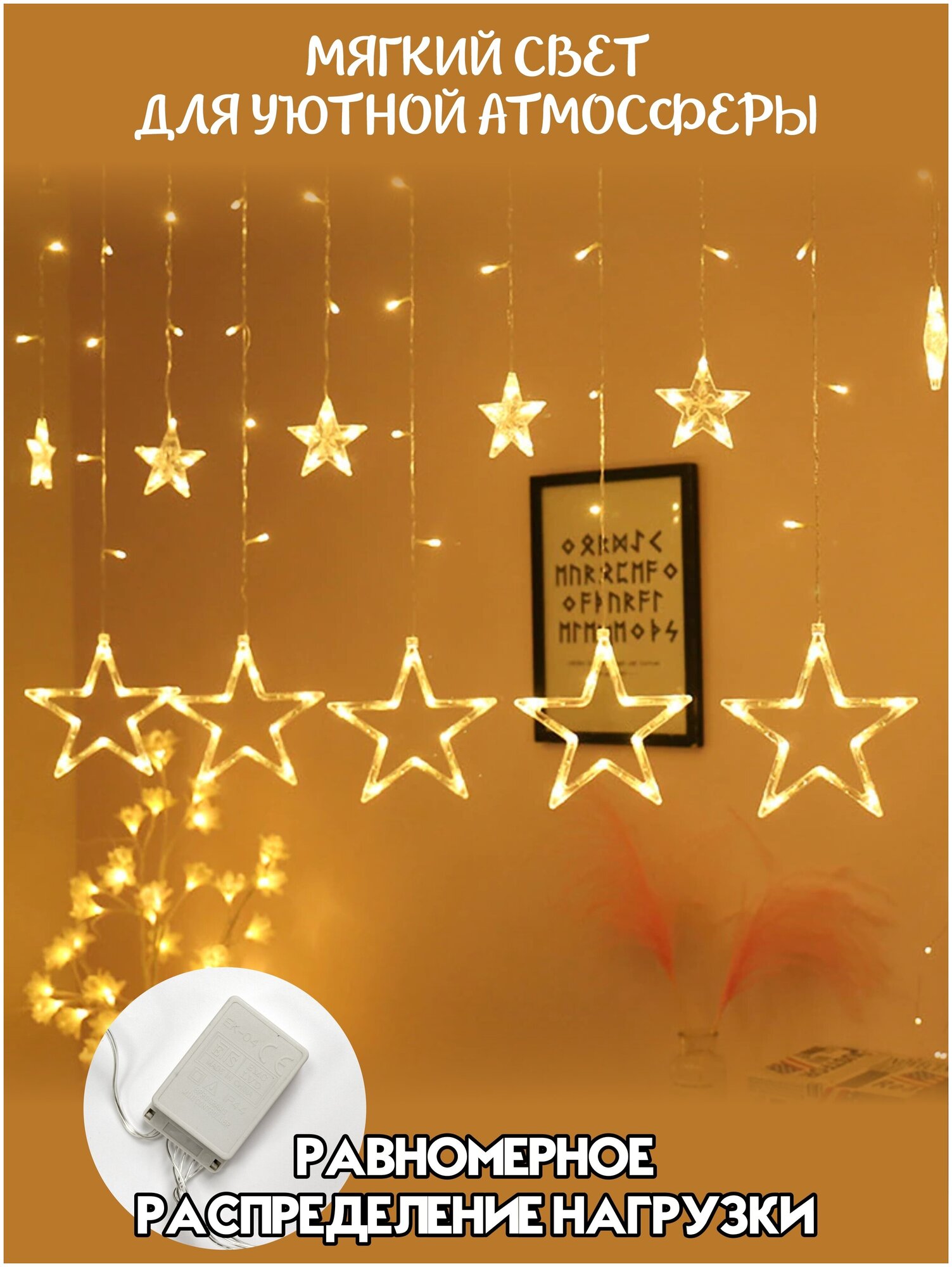 Гирлянда штора X-line "Звезды" на Новый год 3 м., желтый информация: