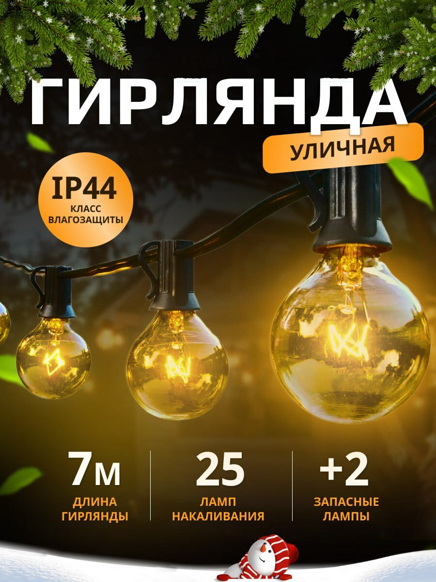 Гирлянда "Ретро" садовая/уличная, 7,5м, 25 лампочек, стекло, теплый свет, IP44 информация: