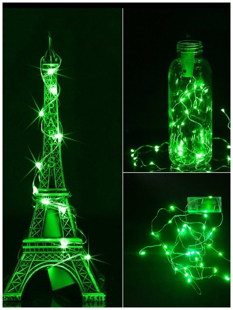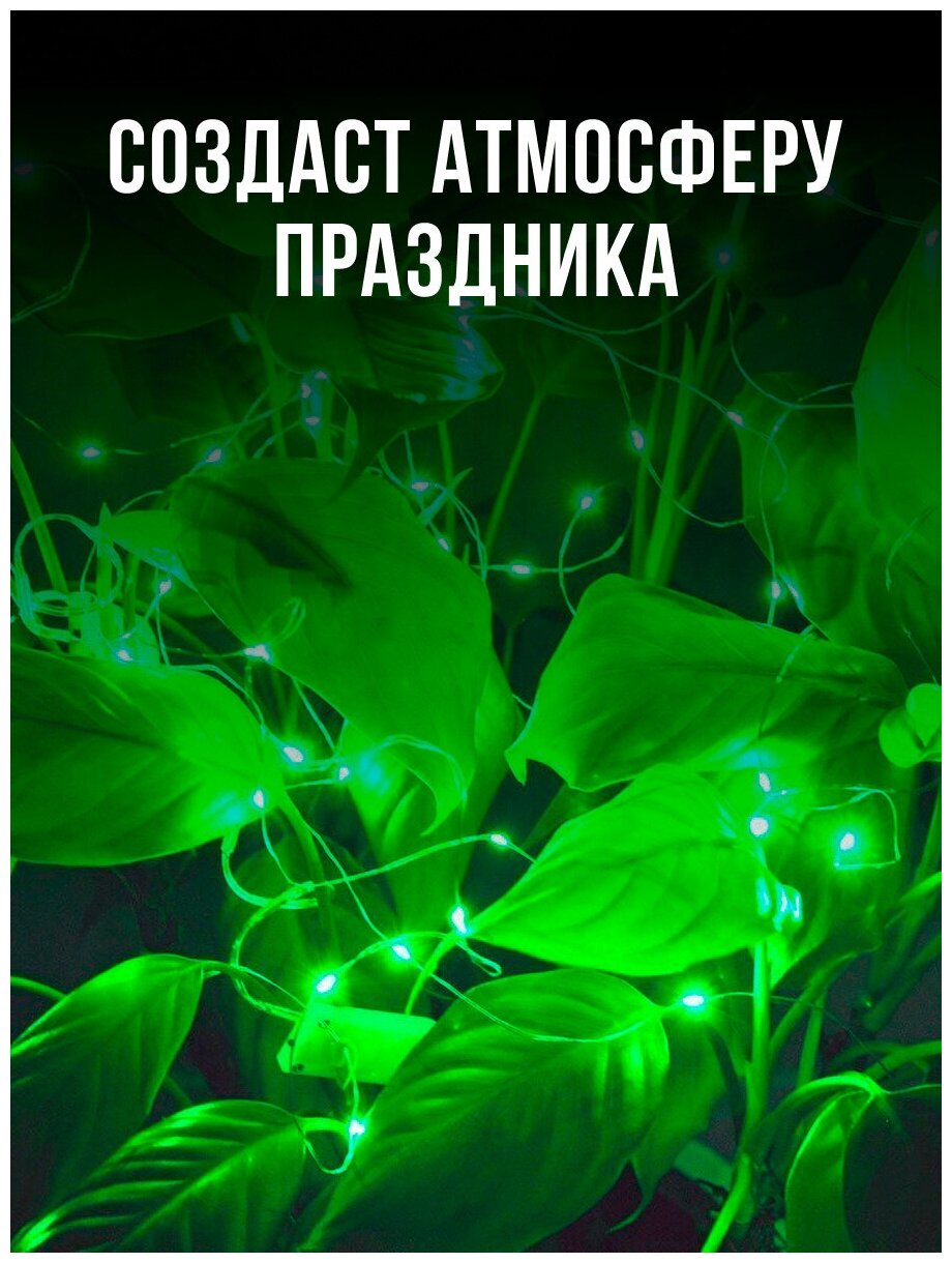 Гирлянда "Нить" светодиодная ДОМ ХИТ, 2 м, работает от батареек. Создайте уютную атмосферу праздника, зеленая информация: