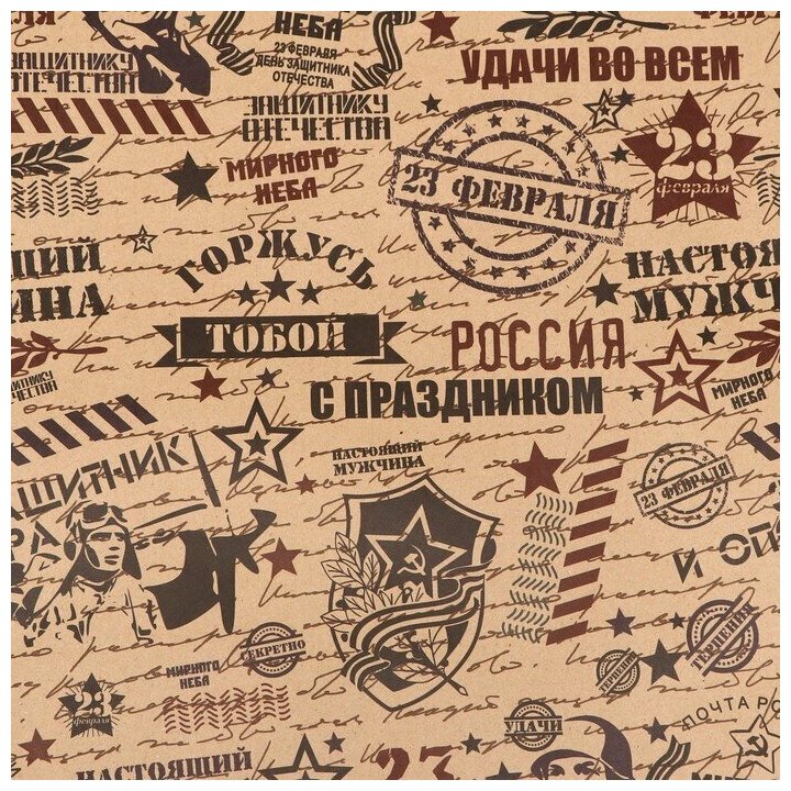 Бумага упаковочная, крафт "Горжусь тобой", 70х100 см, 1 лист 9306023 информация: