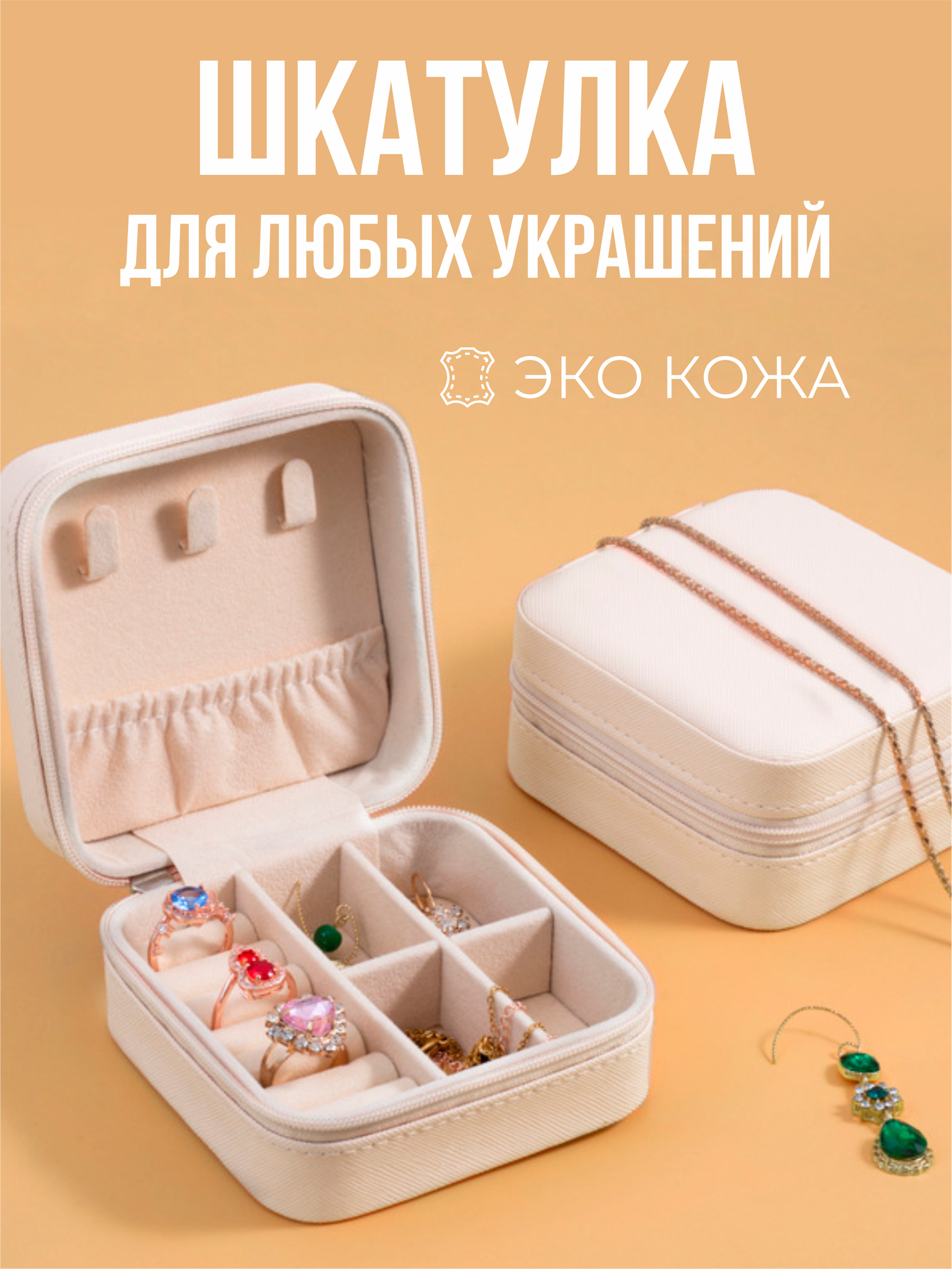 Отзывы на Шкатулка для хранения украшений и колец, коробочка для бижутерии, цвет - бежевый