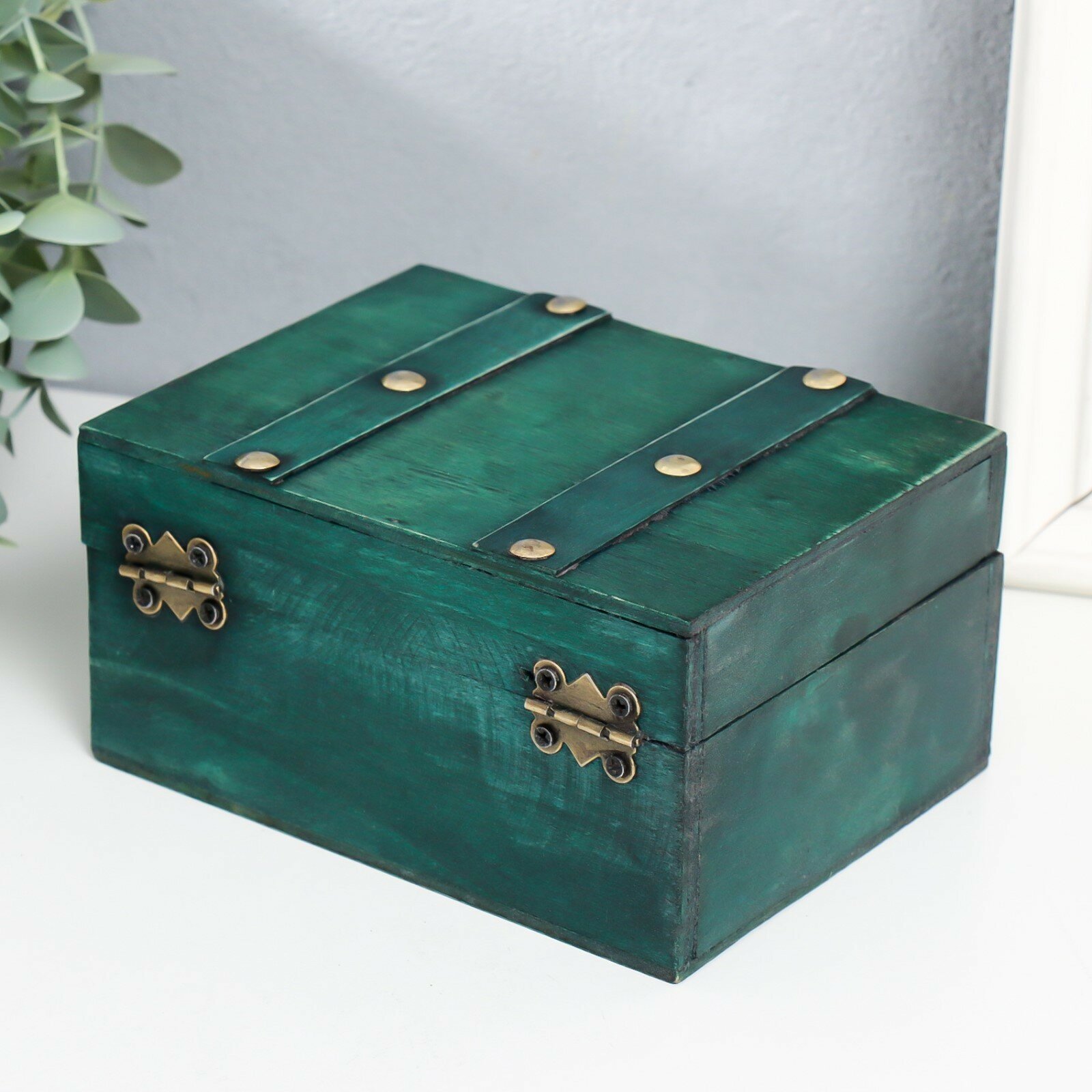 10 цен на Шкатулка дерево сундучок "Алиенора" с заклёпками, плоская, зелёный 15х11,5х7,5 см 1шт.