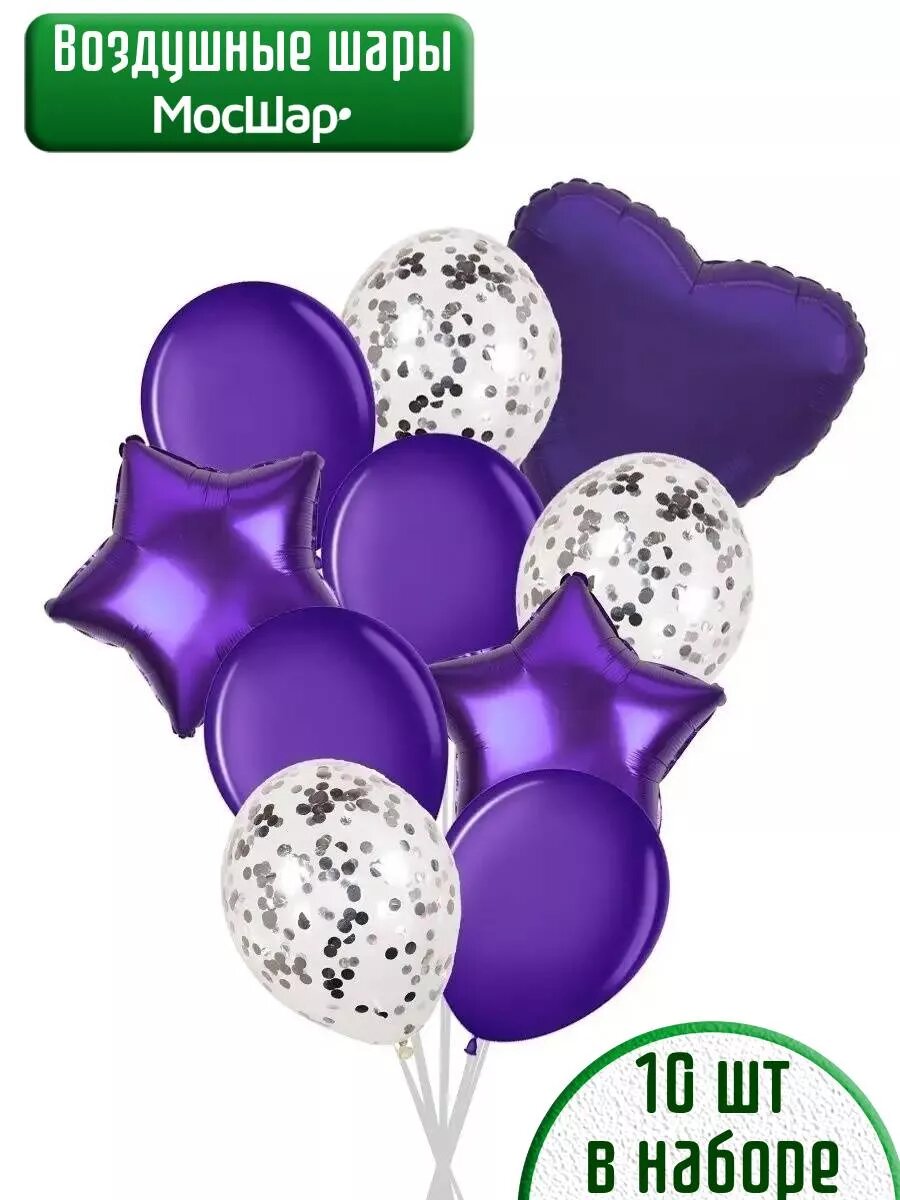 Набор воздушных латексных шаров мосшар, конфетти -10шт, высота 30см, цвет фиолетовый 299 ₽