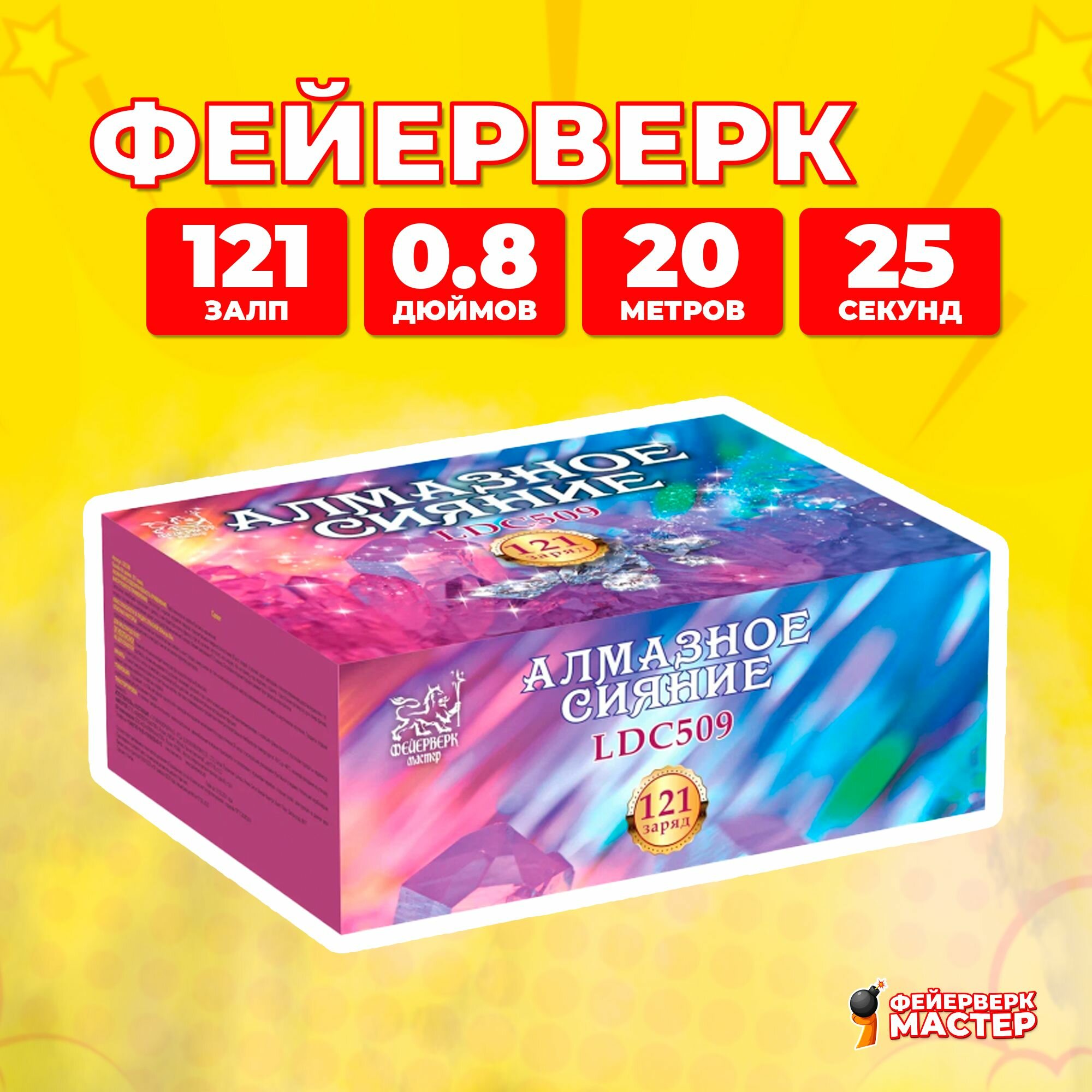 Салют фейерверк Алмазное сияние, 121 заряд, 0.8 дюймов, LDC509 информация:
