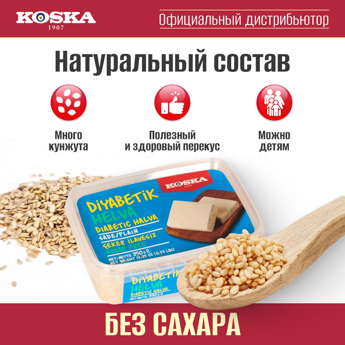 DIABETIC Helva NO SUGAR ADDED, Koska (Кунжутная халва без сахара), 350 г. 1 419 ₽