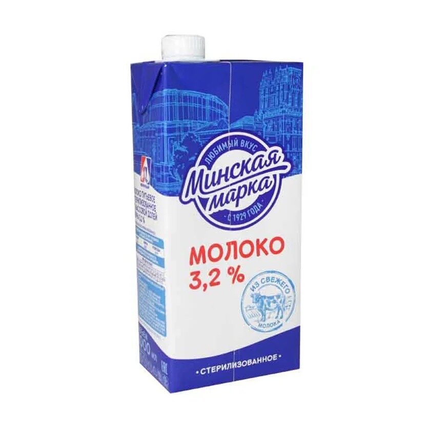 Молоко Минская Марка стерилизованное 3.2%, 1 л 12шт информация: