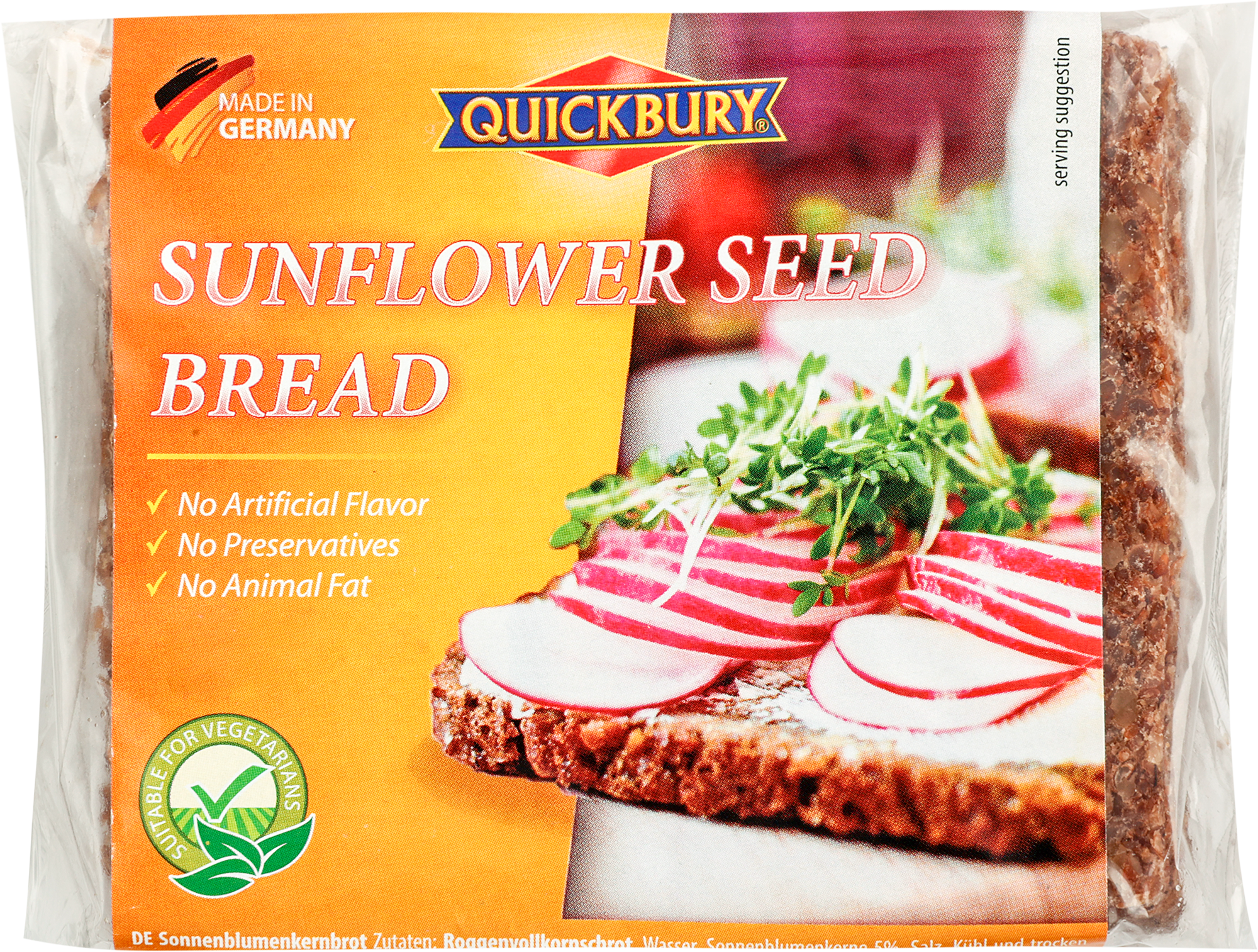 Хлеб цельнозерновой с семенами подсолнечника, из ржаной муки грубого помола, 500гр., Quickbury информация: