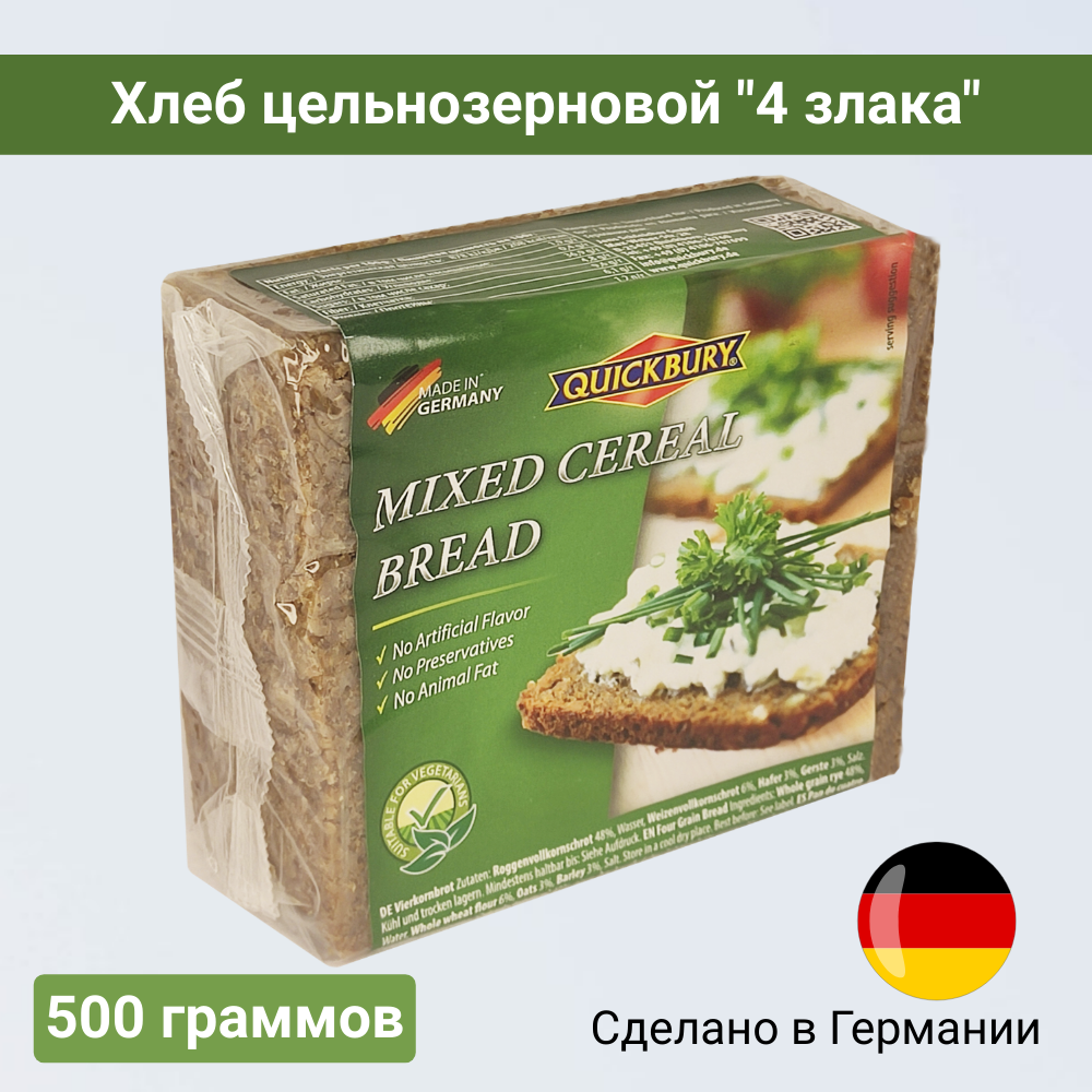 10 цен на Хлеб цельнозерновой 4-х злаковый из ржаной муки грубого помола, 500гр., Quickbury