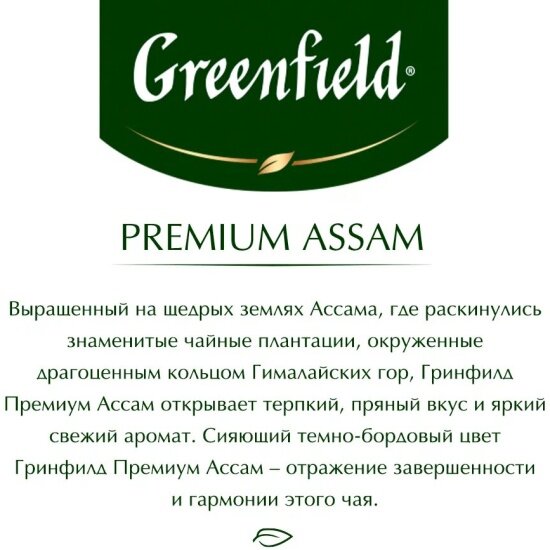 Чай Greenfield Premium Assam 100 г, листовой черный информация: