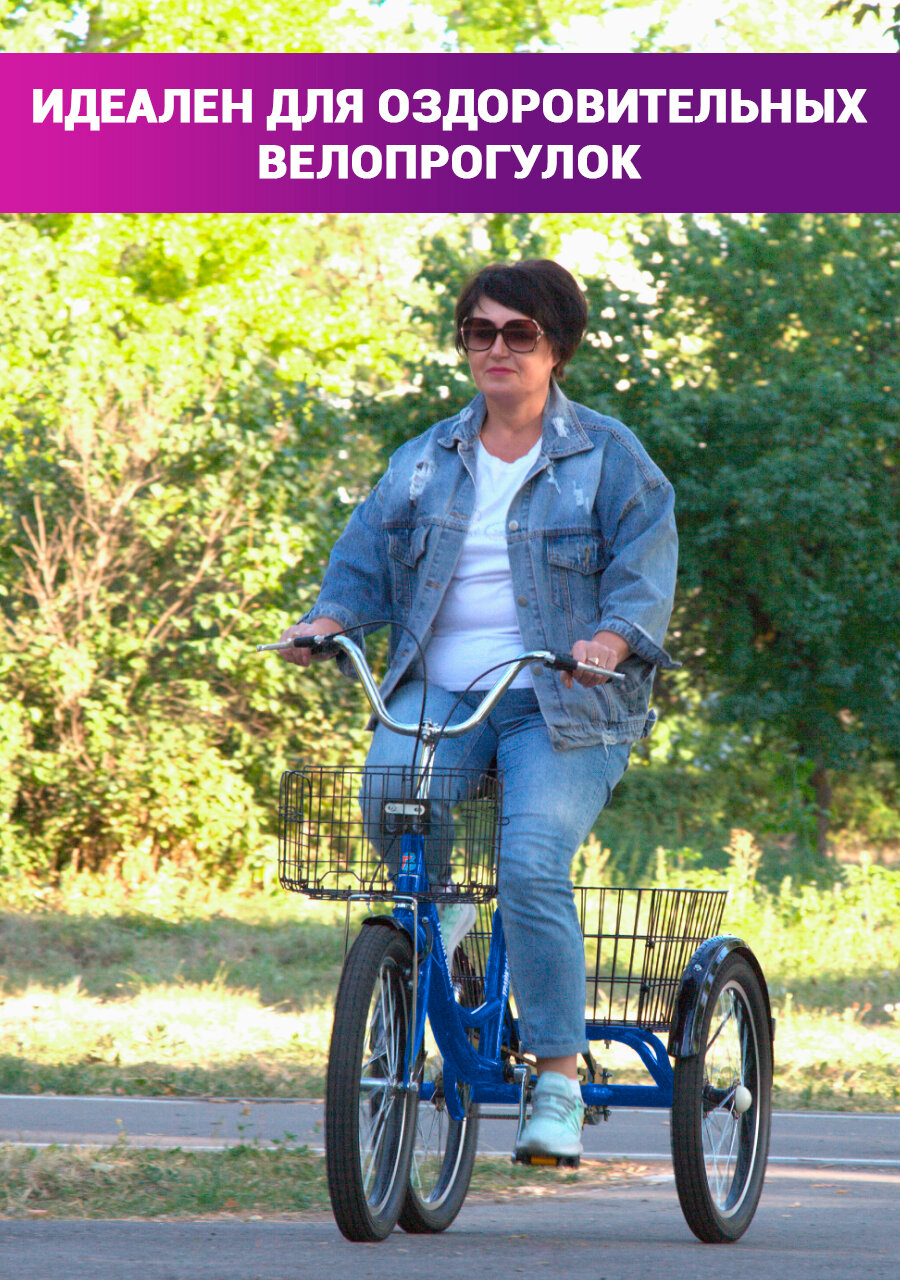 Трехколесный велосипед для взрослых, с 2 корзинами, цвет синий информация: