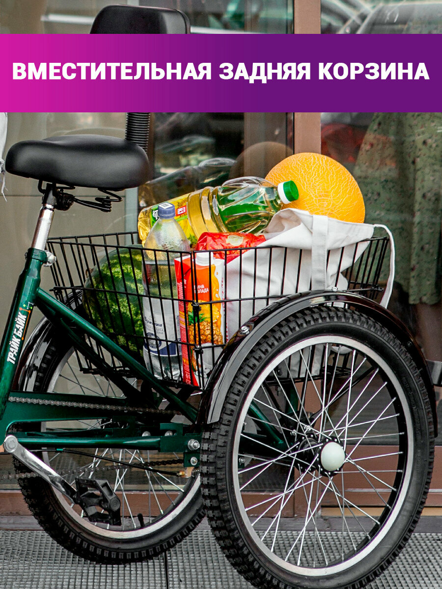 Отзывы на Трехколесный велосипед для взрослых, с 2 корзинами, цвет зеленый