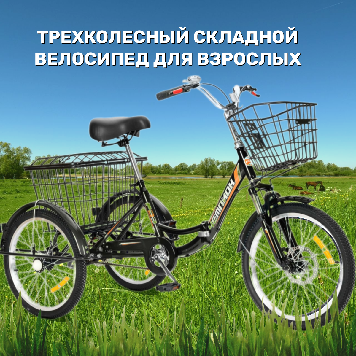 Трехколесный велосипед взрослый черный складной РВЗ Чемпион 20 информация: