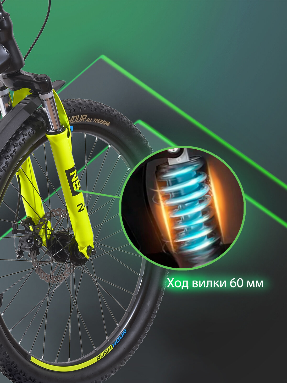 Велосипед горный дисковый 26" рост 140-155см 7 скоростей желтый рама 14" велик 8 лет 9 лет 10 лет переключатель SHIMANO скоростной RUSH HOUR NX 605 22 390 ₽