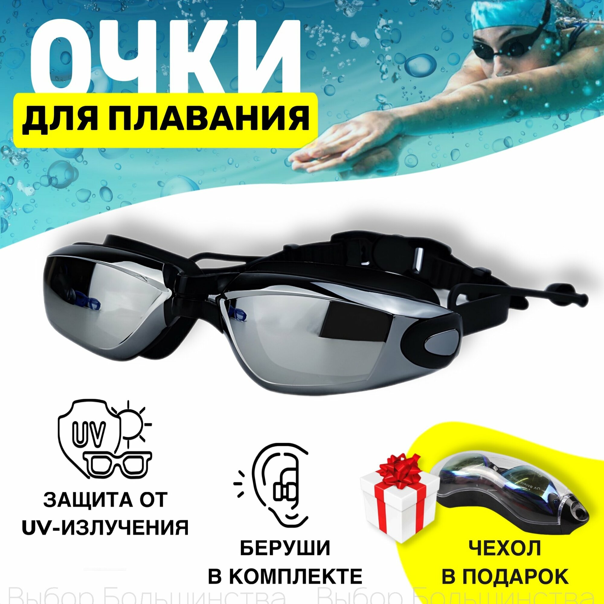 10 цен на Очки для плавания с берушами и чехлом