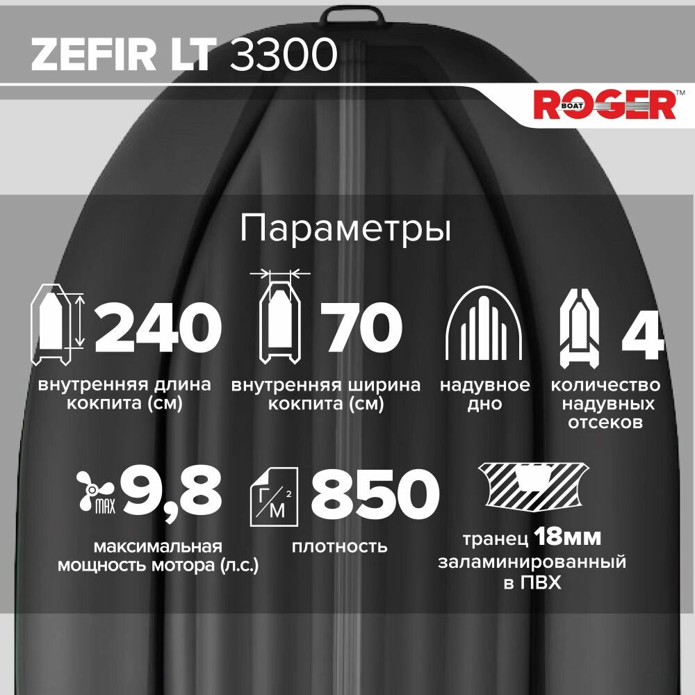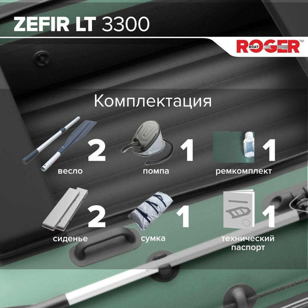 Лодка надувная ПВХ под мотор ROGER Zefir 3300 LT, лодка роджер НДНД малый киль (зеленый-черный комбинированный) информация: