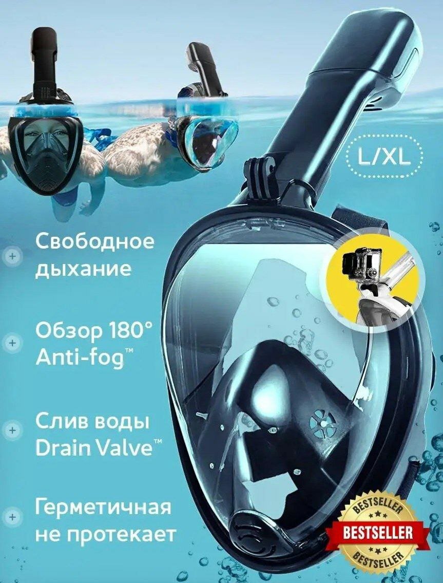 Маска для снорклинга черная L/XL / полнолицевая маска / маска для плавания / маска для дайвинга информация: