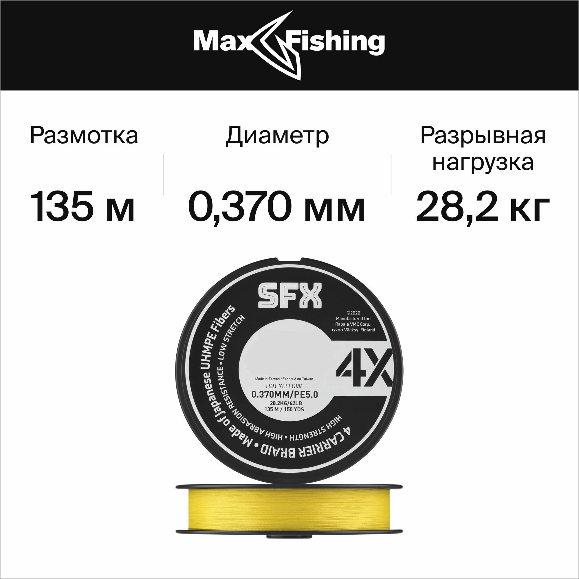 Sufix, Шнур SFX 4X, 135м, 0.37мм, 28.2кг, 5, желтый информация: