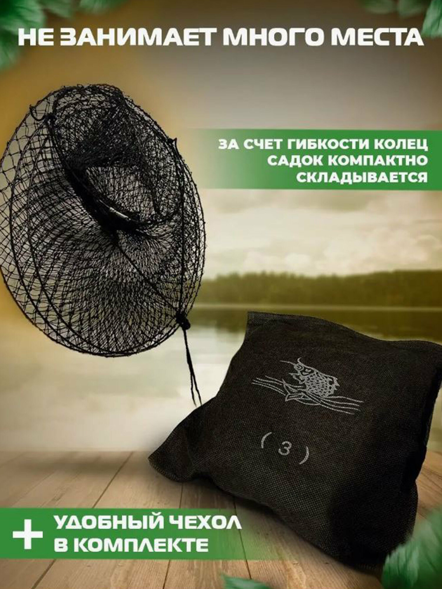 Садок для рыбалки 3 кольца ручка с кнопкой