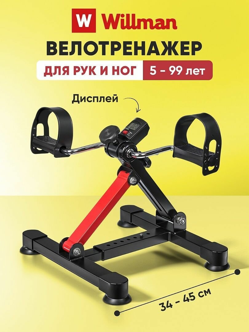 Отзывы на Тренажер для ног и рук Willman педальный, мини велотренажер, для дома, максимальный вес 100 кг, складной, с дисплеем, черный