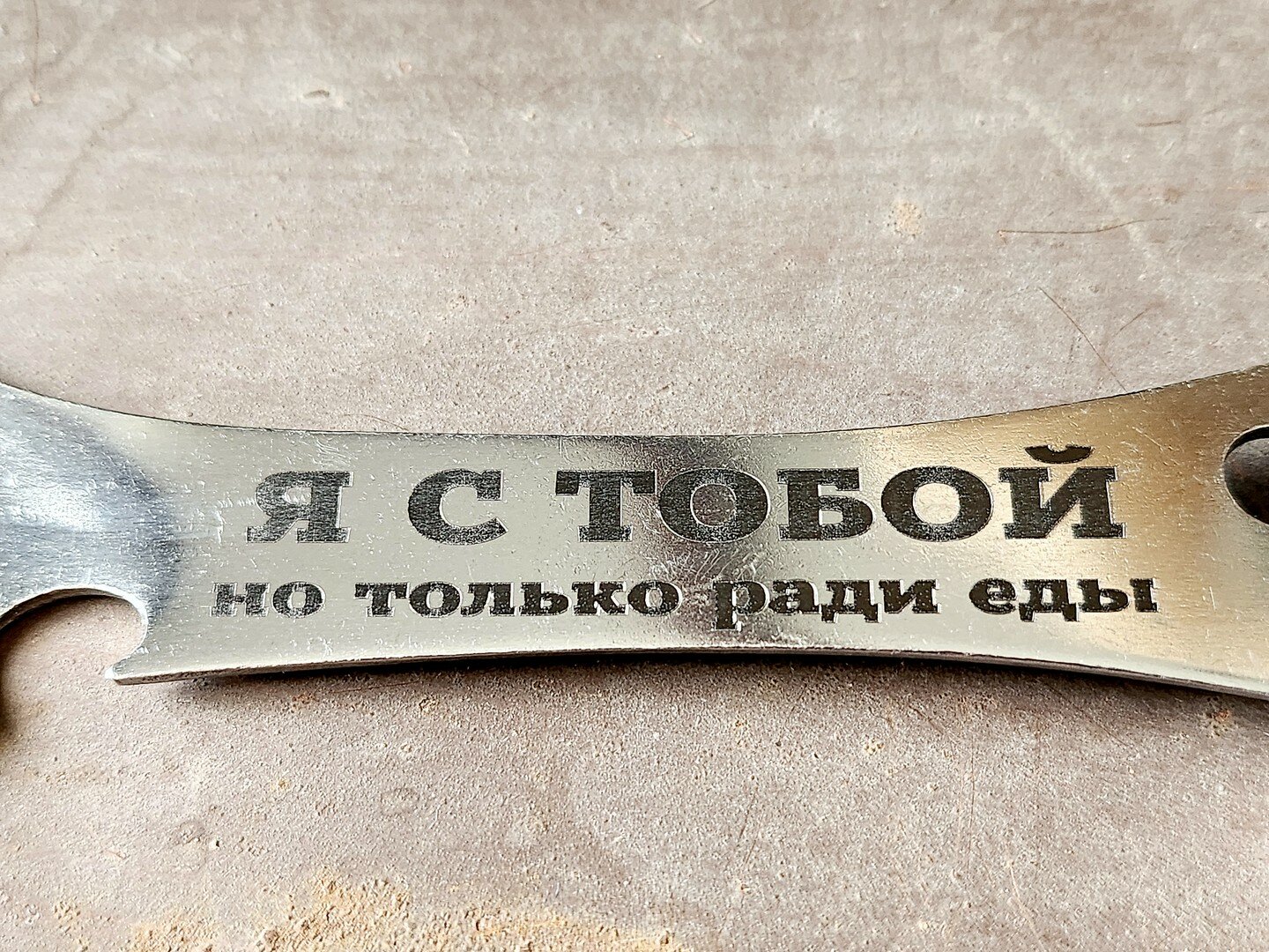 Походная ложка-вилка Фотонные коты "Ложка ↔ Вилка; Вилка ↔ Ложка", мультитул 5-в-1 для туризма с забавной надписью 600 ₽