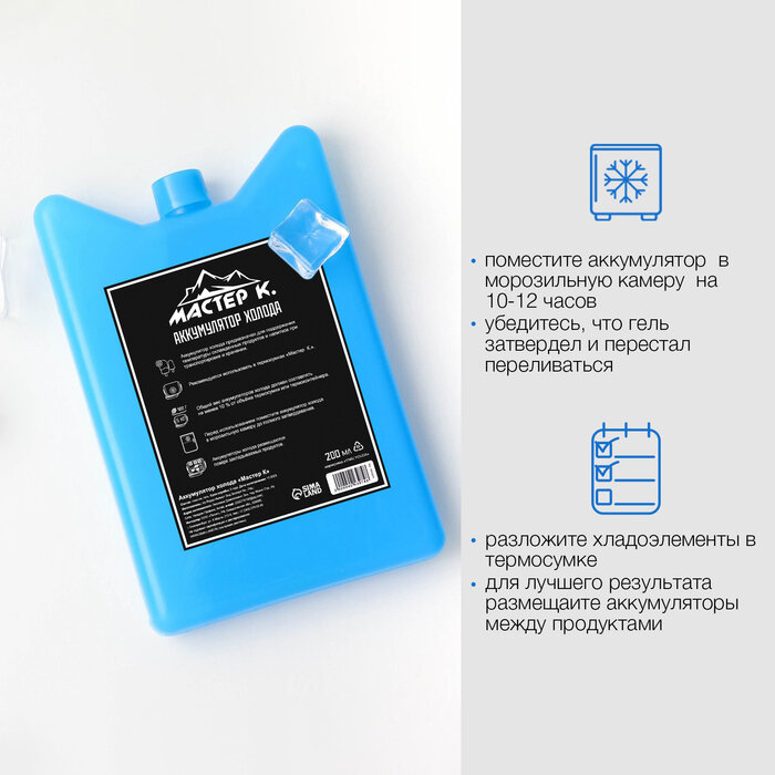 Аккумулятор холода гелевый "Мастер К", 200 мл, хладоэлемент для термосумок, 14.5 х 10 х 2 см информация: