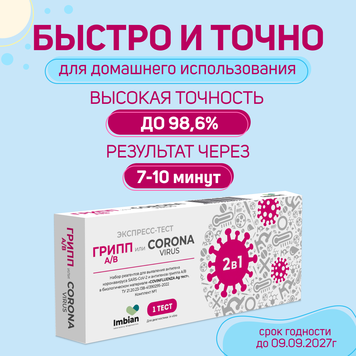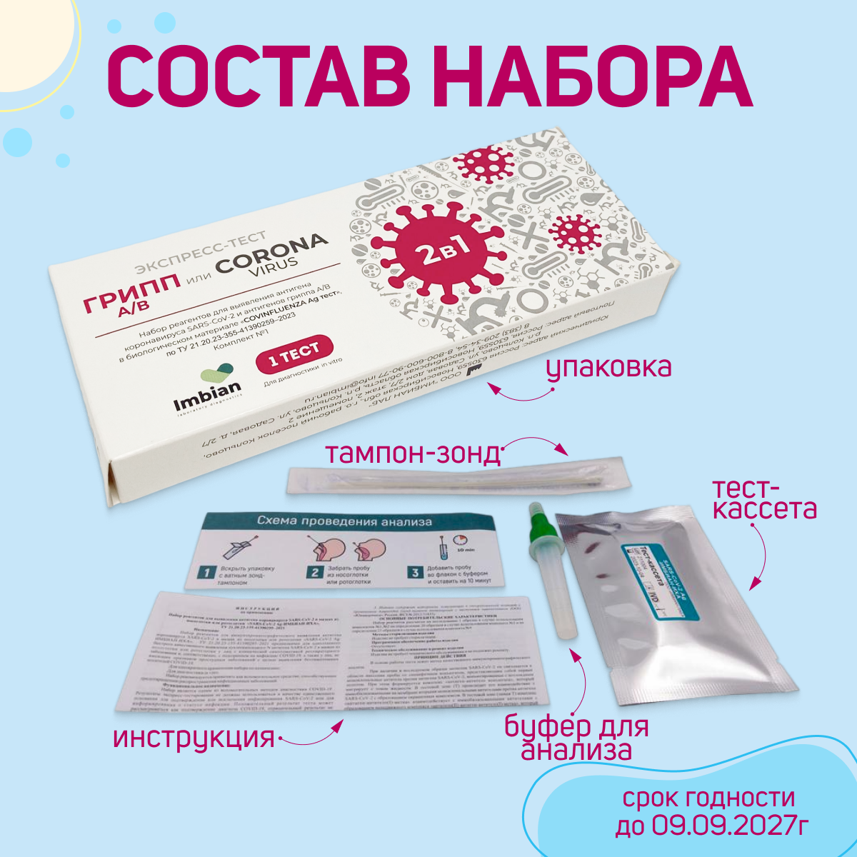 Тест Экспресс на антиген 2в1, Covid-19+грипп А/В, Imbian, 1шт iKR-004/1.1 429 ₽
