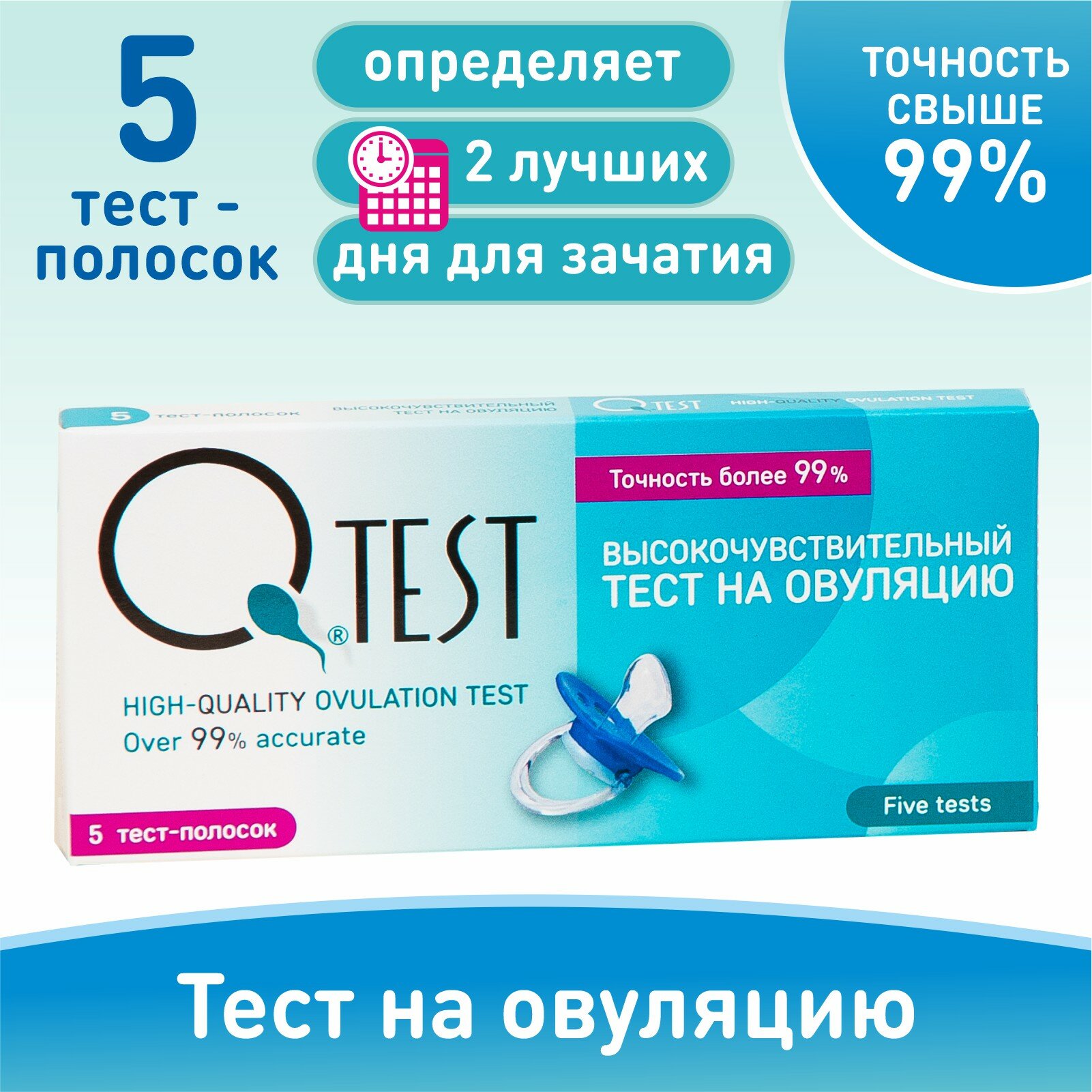 Тест на овуляцию Qtest 5 штук тест-полосок, высокочувствительный информация: