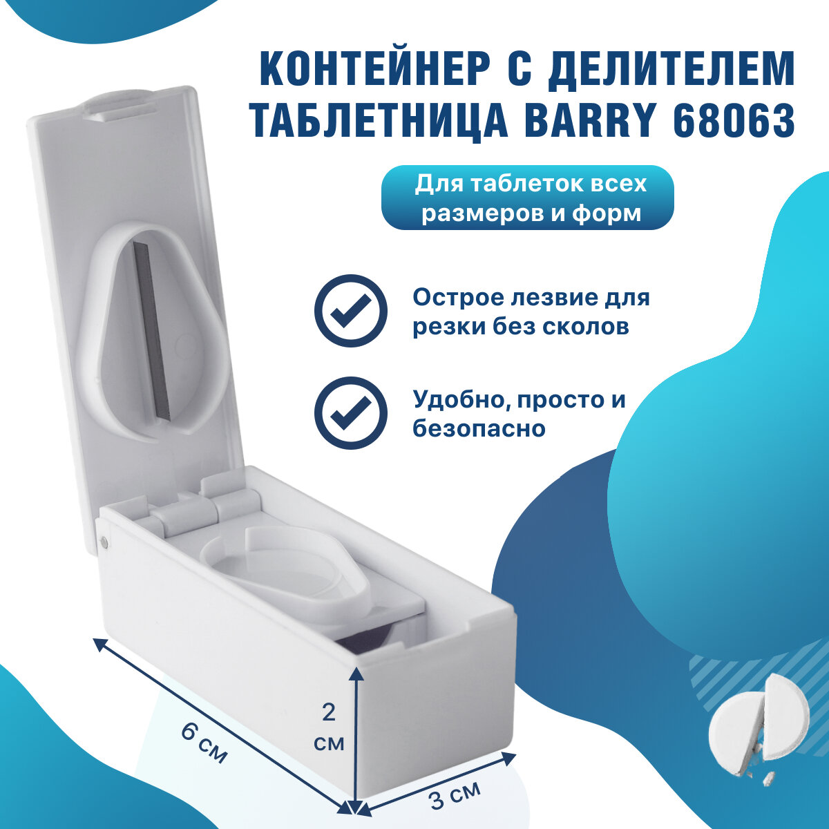 Таблетница Barry артикул 68063 с резаком для таблеток, пластик, белая с лезвием для резки таблетки 590 ₽