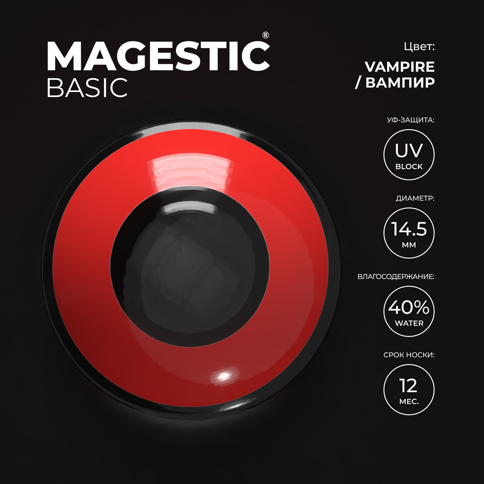Цветные контактные линзы красные вампир для глаз MAGESTIC Halloween 1 пара, 12 месяцев, 0.00, кривизна 8,6 мм, диаметр 14,5 мм