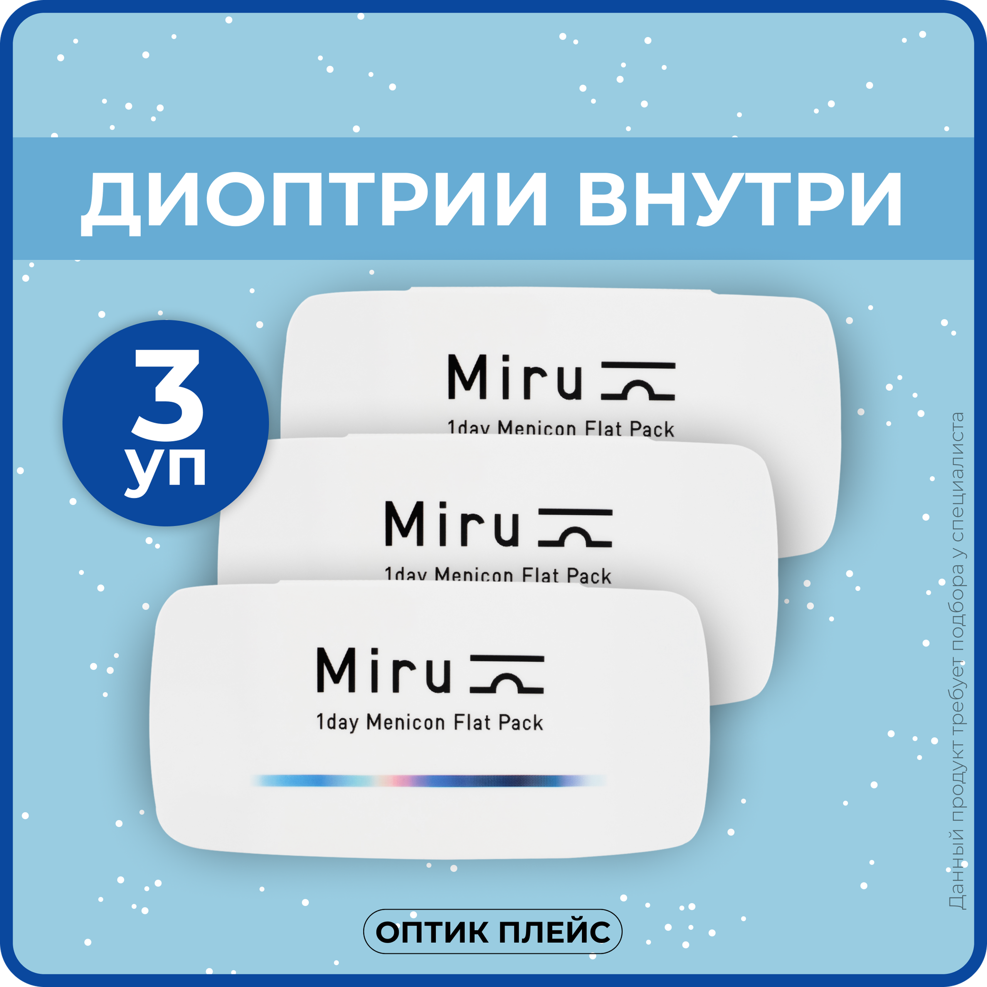 Контактные линзы MIRU 1 Day Menicon Flat Pack (30 линз) R. 8.6 +3.00, 3 упаковки 7 150 ₽