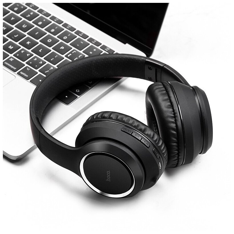 10 цен на Bluetooth гарнитура HOCO W41 Charm BT5.3, AUX/microSD, накладная, громкость +/- (черный)