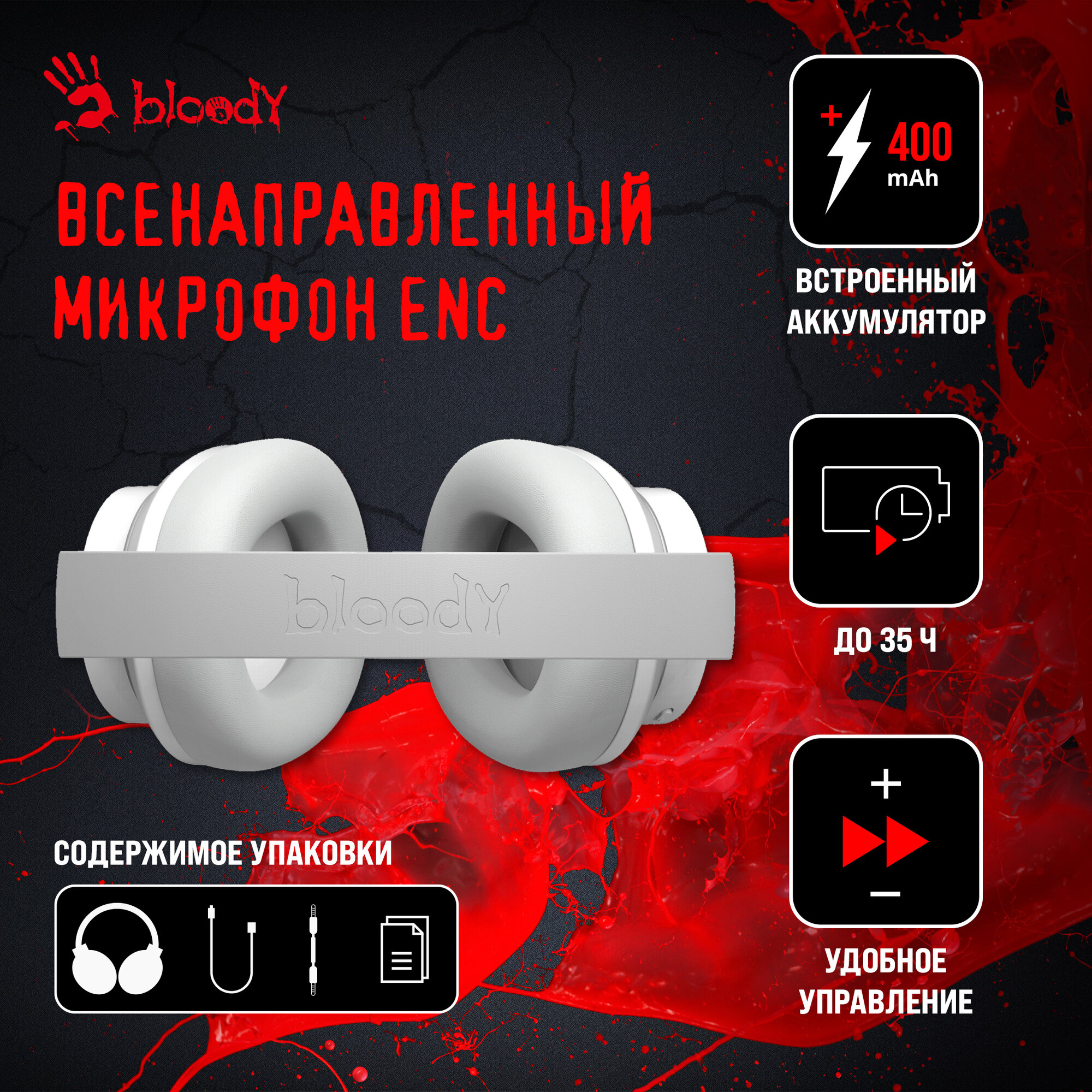 Наушники накладные A4Tech Bloody MH390 белый беспроводные bluetooth (MH390 WHITE)