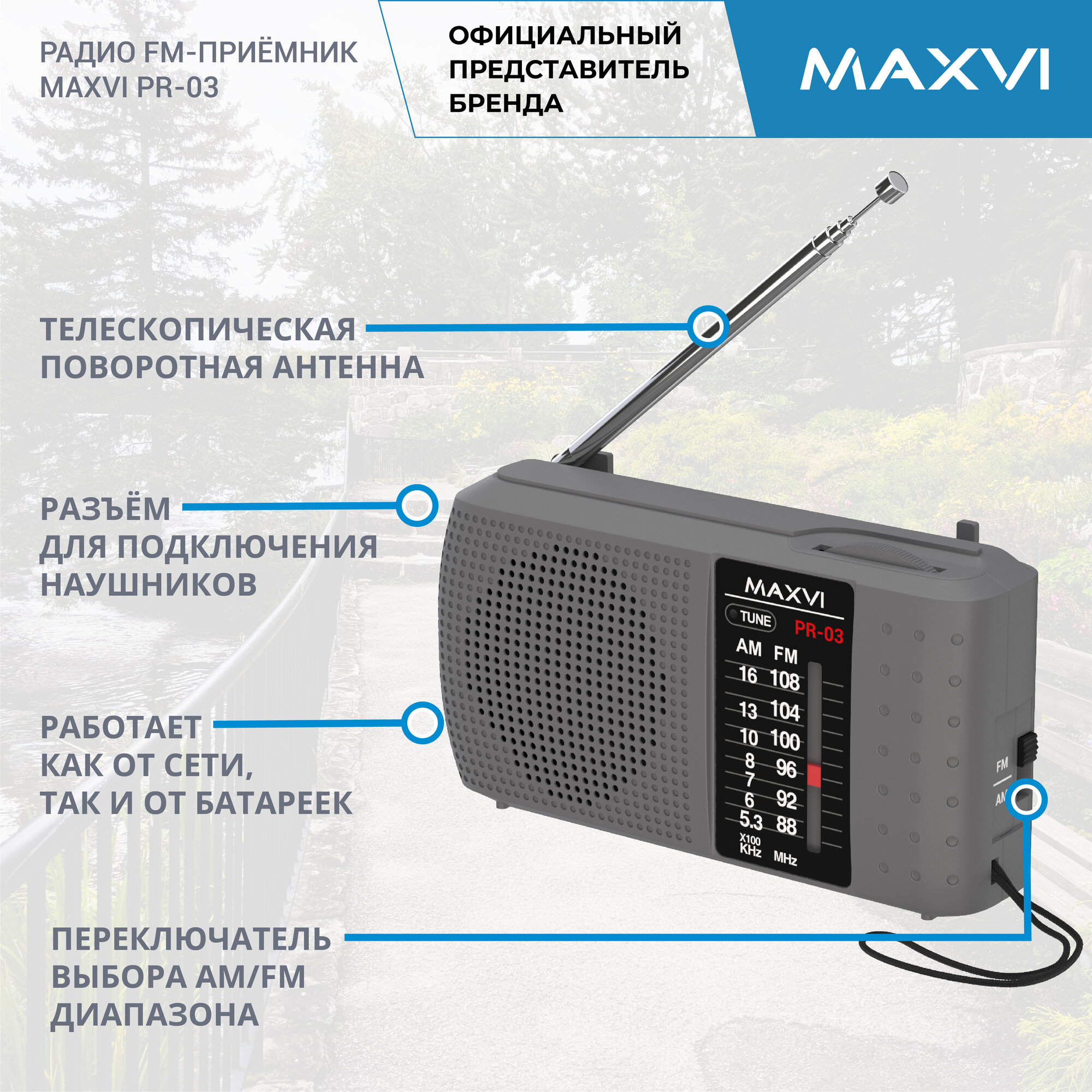 Радиоприемник портативный Maxvi PR-03 серый с разъемом для наушников 683 ₽