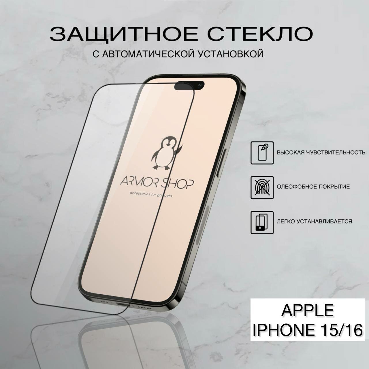 10 цен на Защитное стекло с "автоматической" установкой для iPhone 15/ iPhone 16, глянцевое