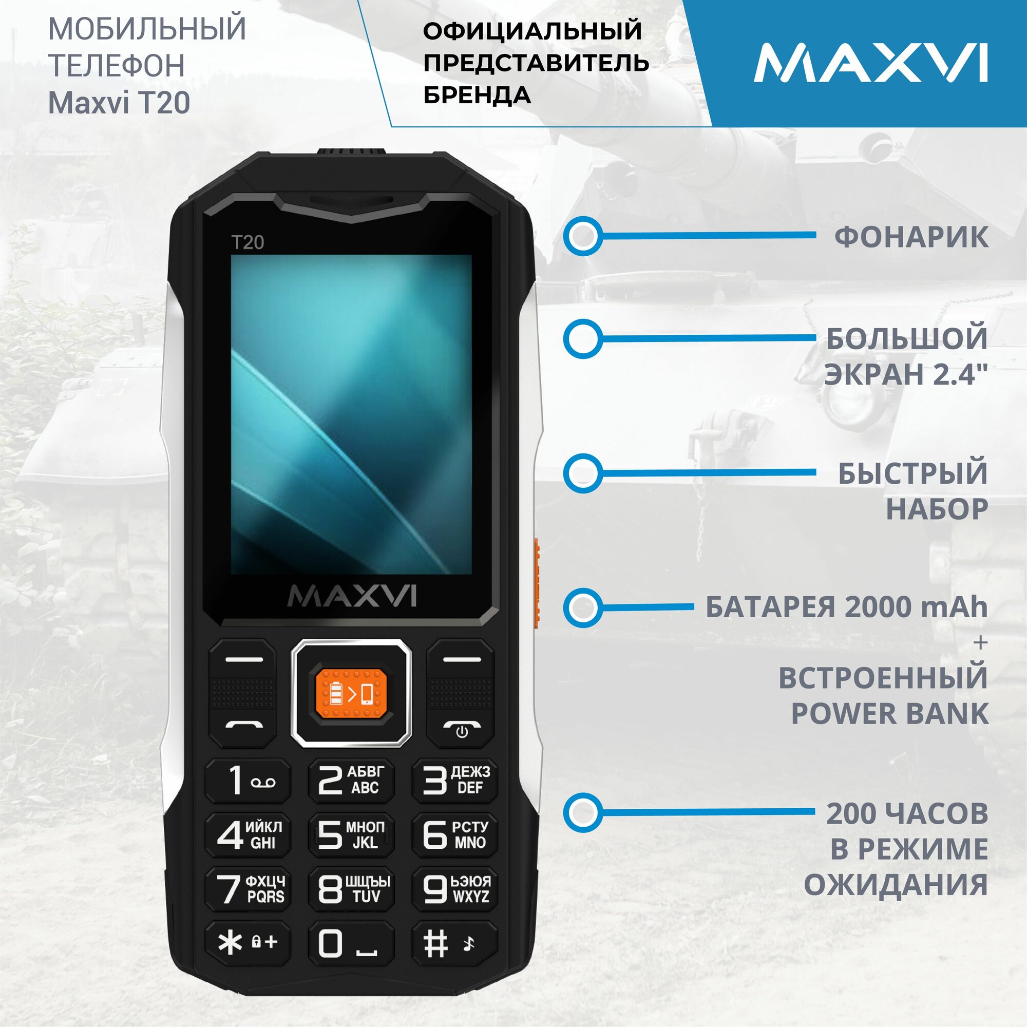 Мобильный телефон для военных MAXVI T20 информация: