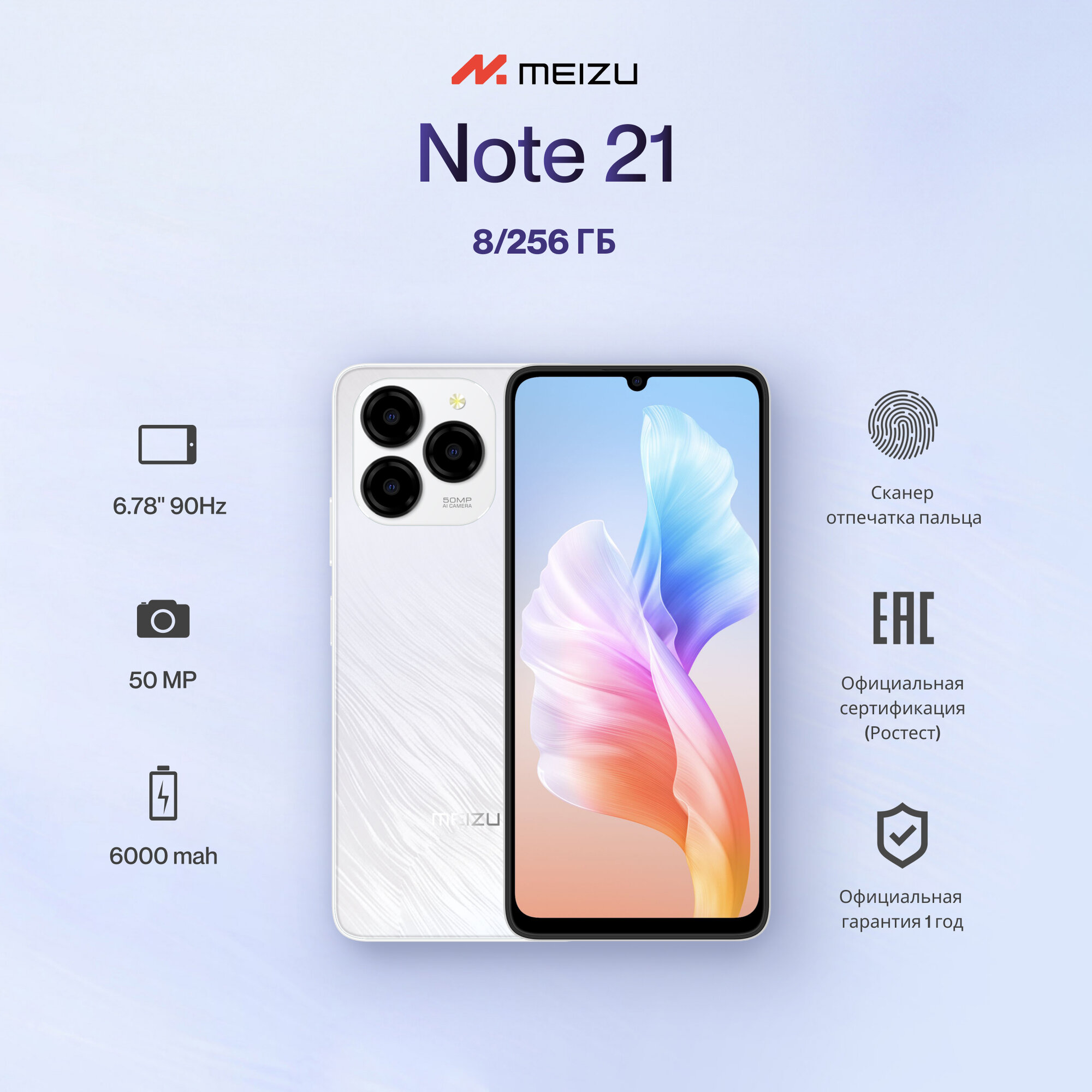 Смартфон Meizu Note 21 M2411 8ГБ/256ГБ, белый (83.45.44501519ru) информация: