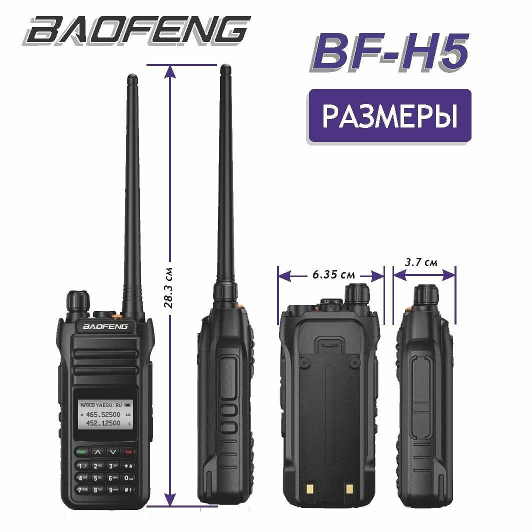 Портативная радиостанция Baofeng BF-H5, 136-174/400-520 МГц, 128 каналов, 10 Вт, 2200 мАч, ЗУ 00029586 информация: