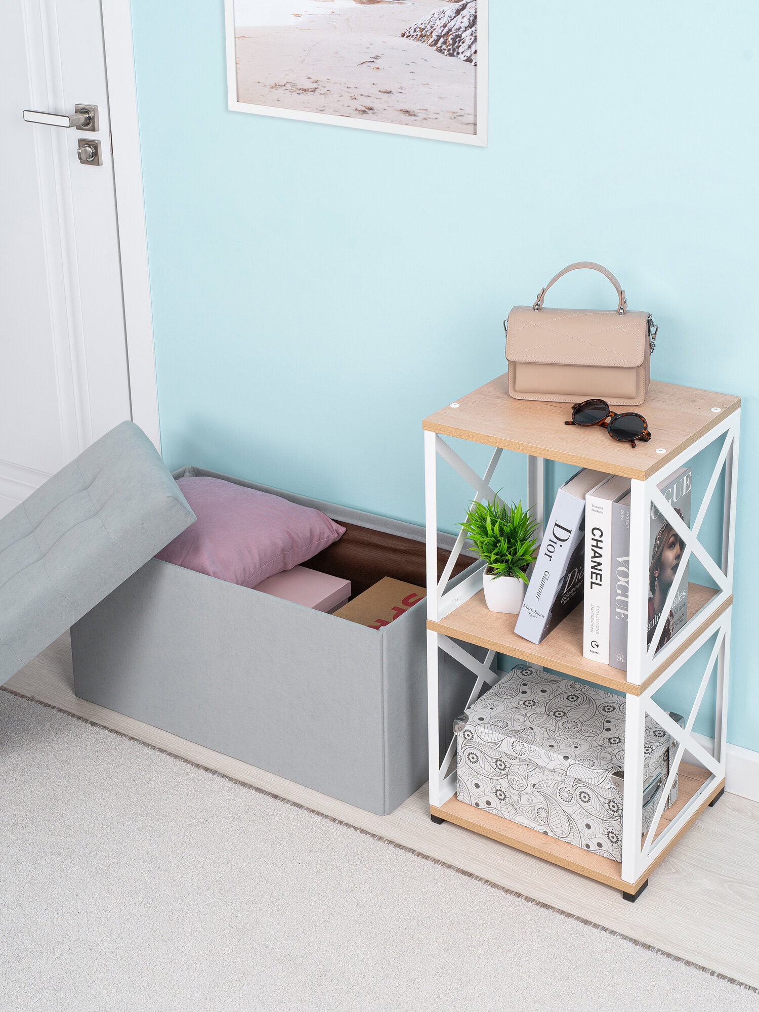 Пуфик, пуф в прихожую с ящиком для хранения складной 37*37*40 см, бирюзовый 2 050 ₽