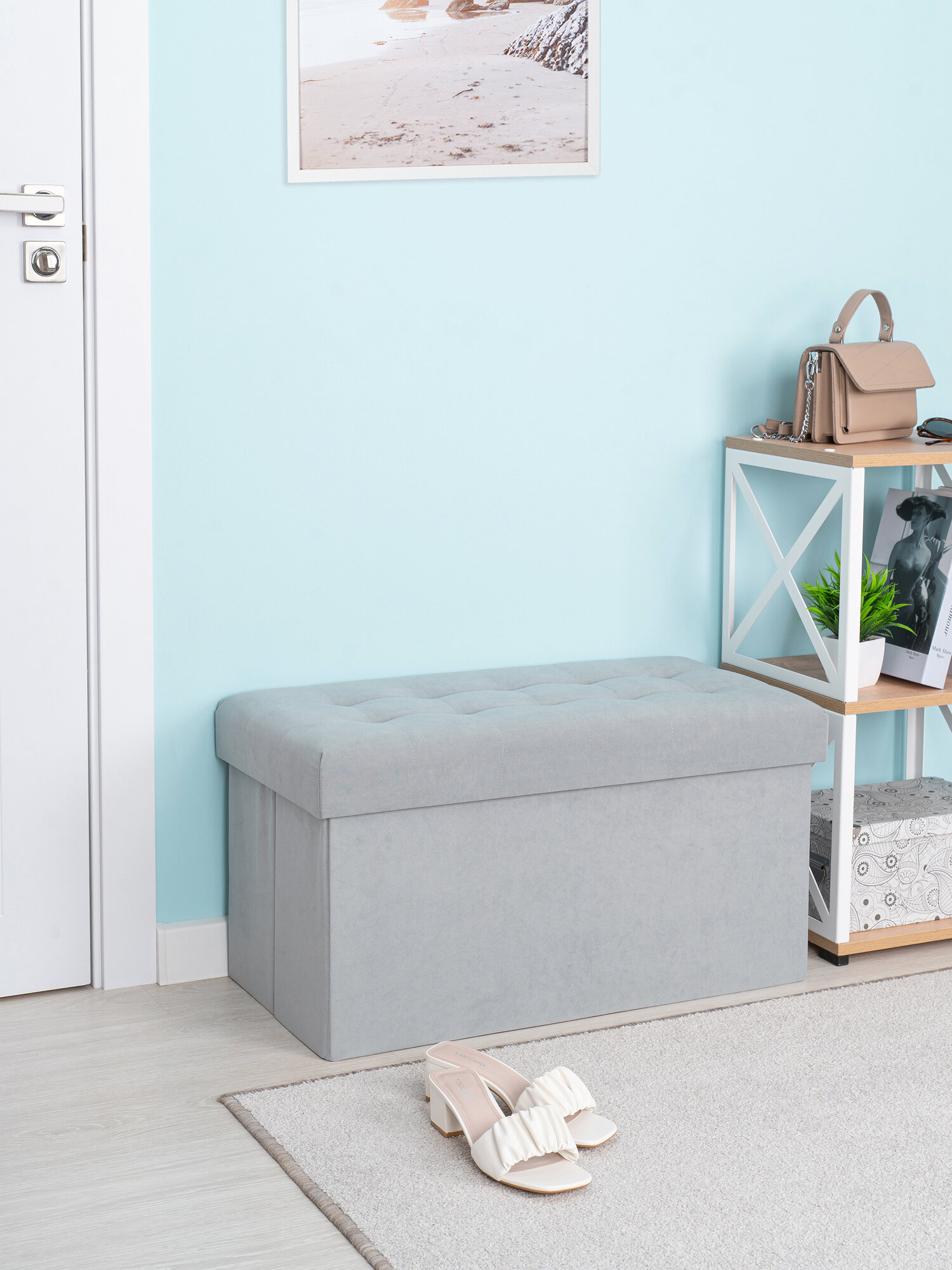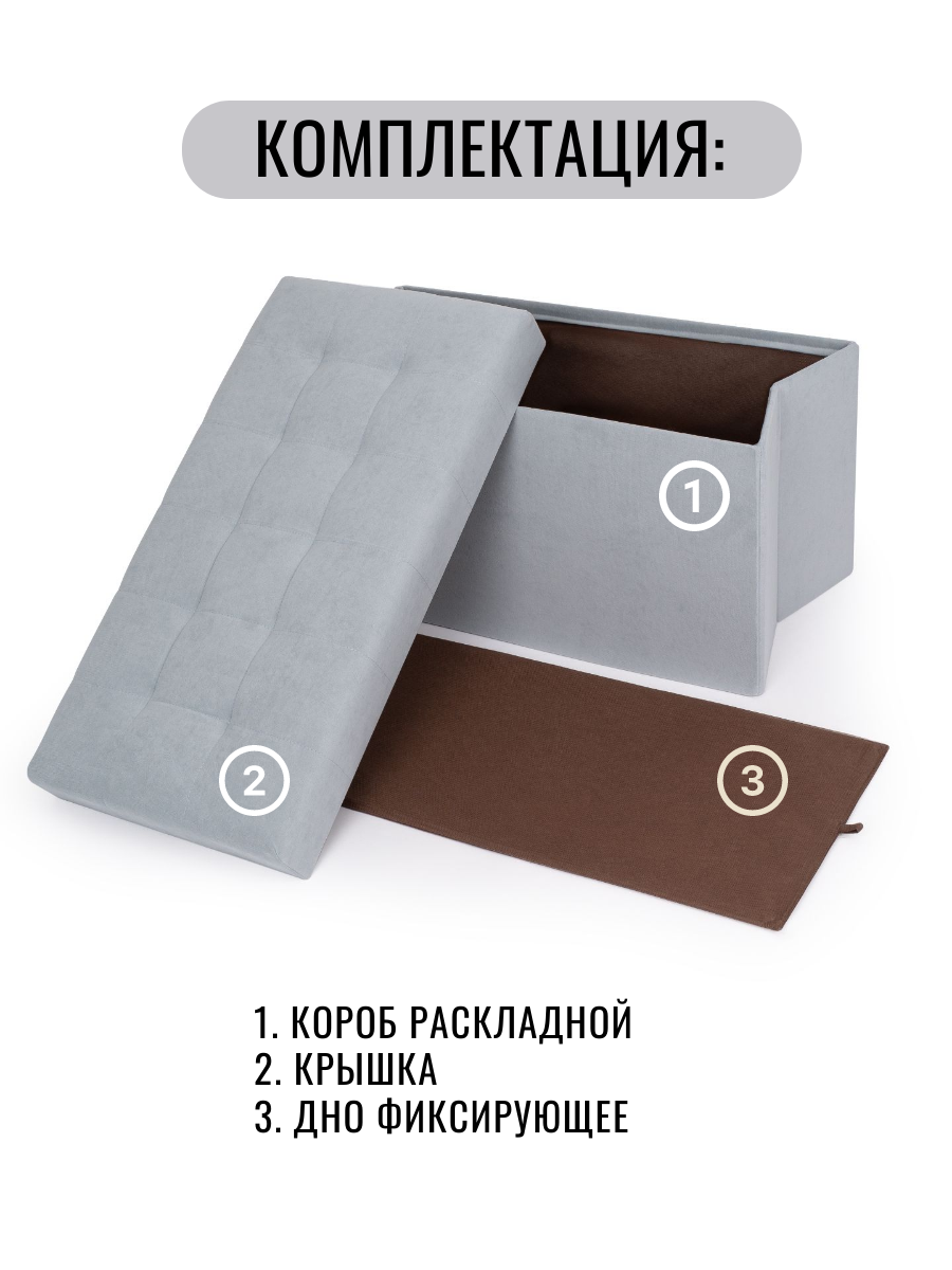 Отзывы на Банкетка пуф в прихожую и спальню складной с ящиком для хранения, 73*37*40см, велюр серый