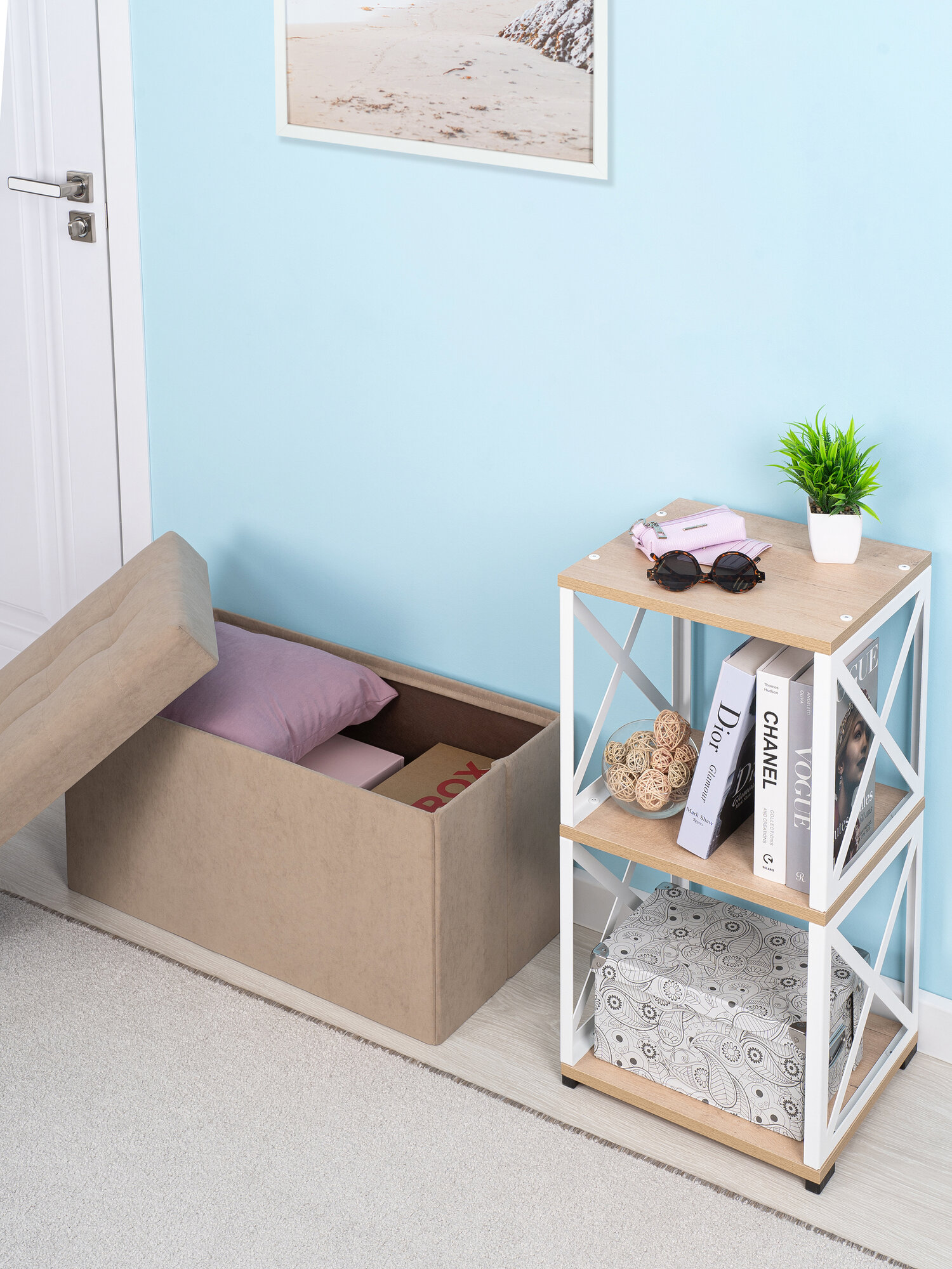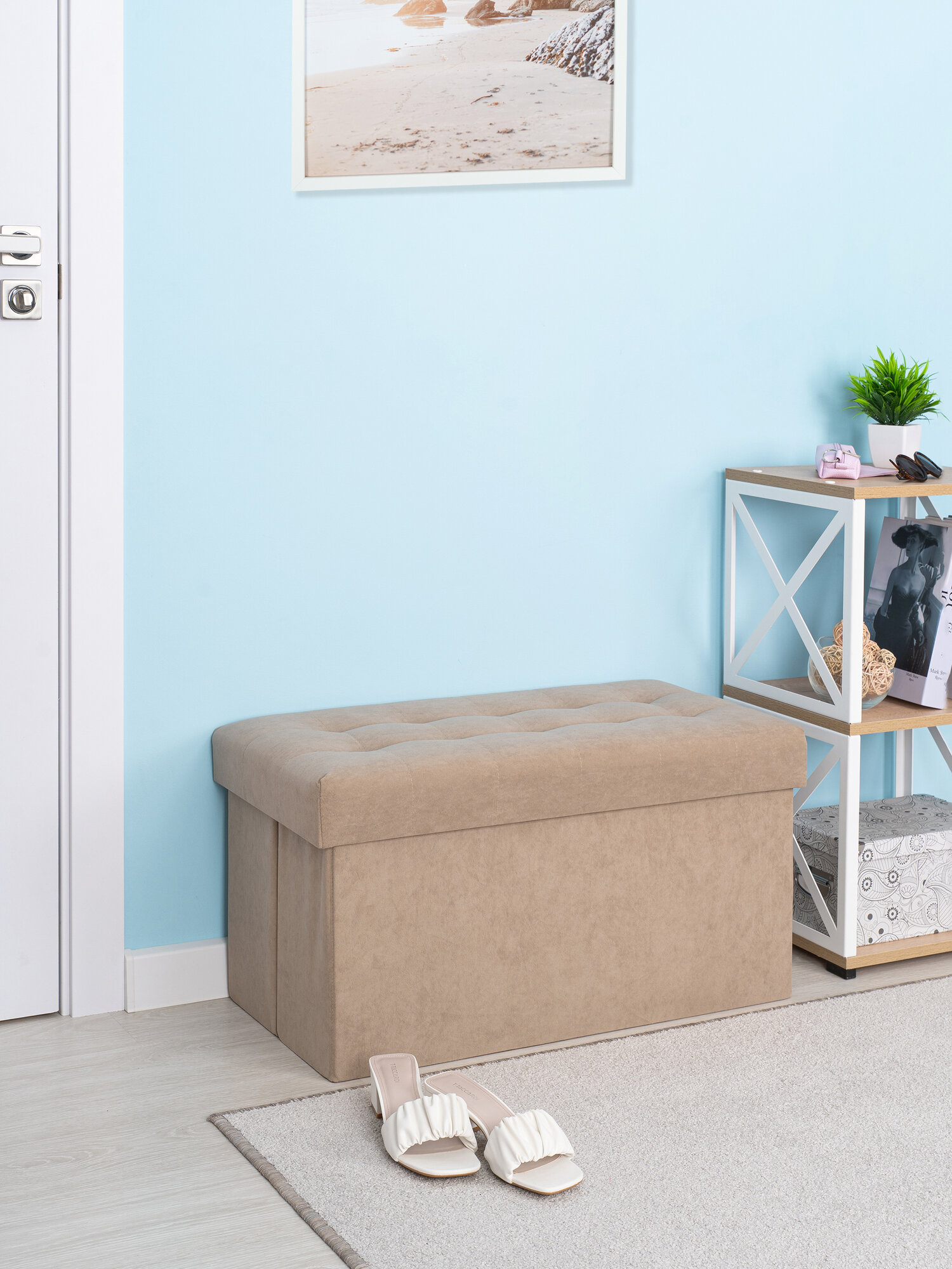 Банкетка пуф в прихожую и спальню складной с ящиком для хранения, 73*37*40см, велюр бежевый 4 150 ₽