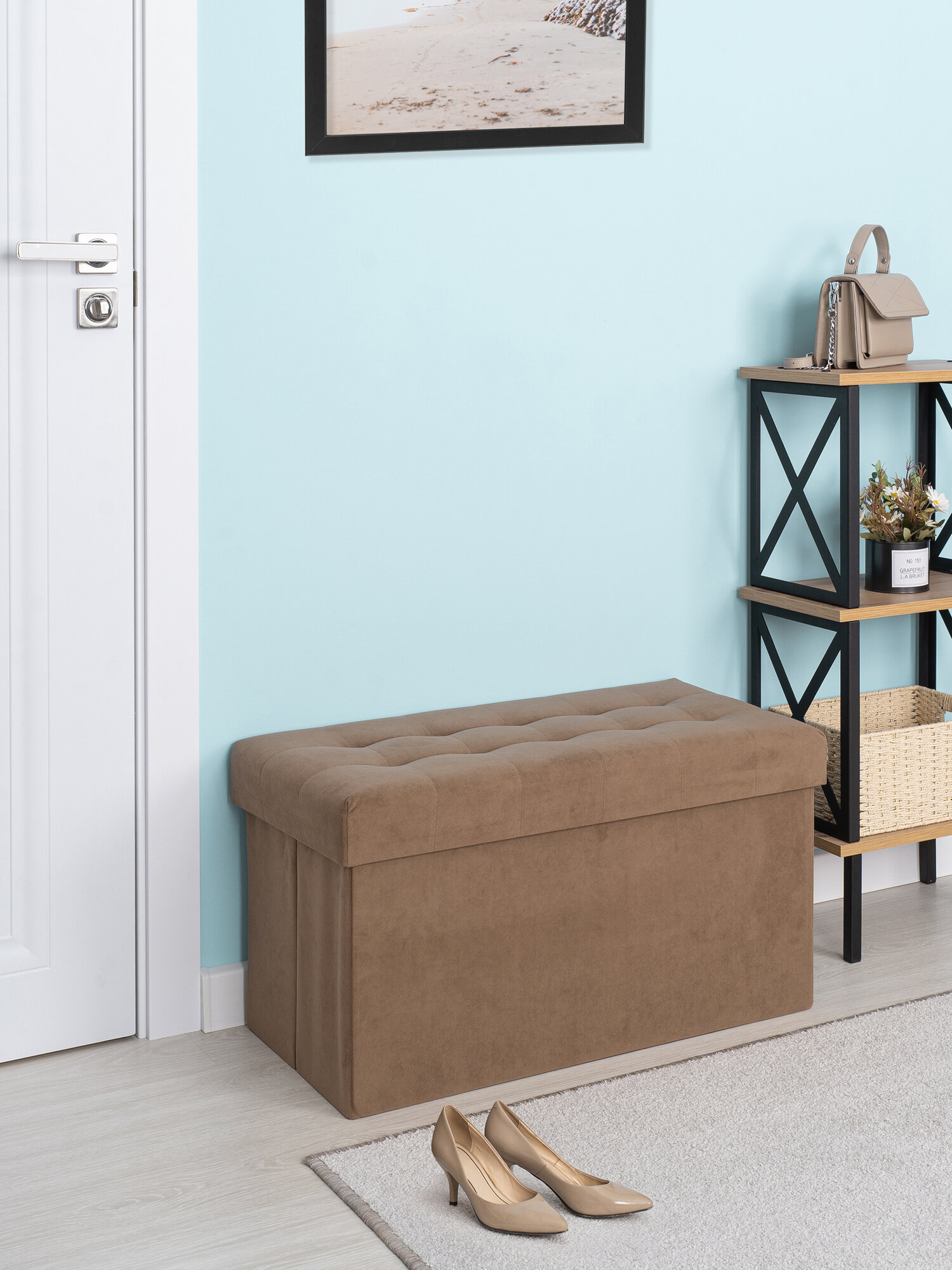 10 цен на Банкетка пуф в прихожую и спальню складной с ящиком для хранения, 73*37*40см, велюр коричневый